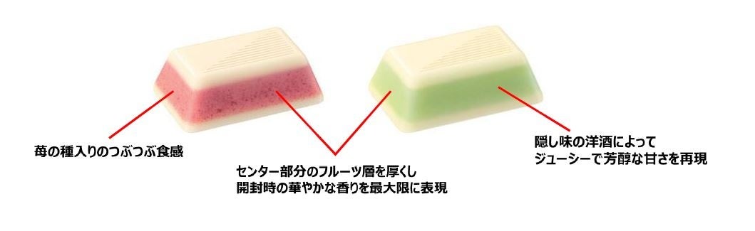・センター部分のフルーツ層を厚くし、あふれ出るようなフルーツの香りを再現。