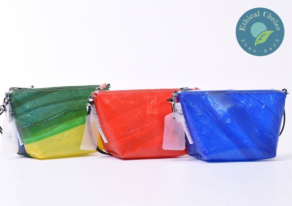 PLASTICITYはクリエイター齊藤明希氏と 株式会社モンドデザインが共同で開発を行うブランド。最終的に廃棄されてしまうビニール傘の生地の部分をリサイクルしています。防水性やメンテナンス性といった傘の持つ素材の特性を最大限活かすため、そのままの状態にて何層にも重ねてプレスをする独自の加工方法を開発。さらに、加工工程にて他の製品には無い独特な質感を持つ製品が完成しました。