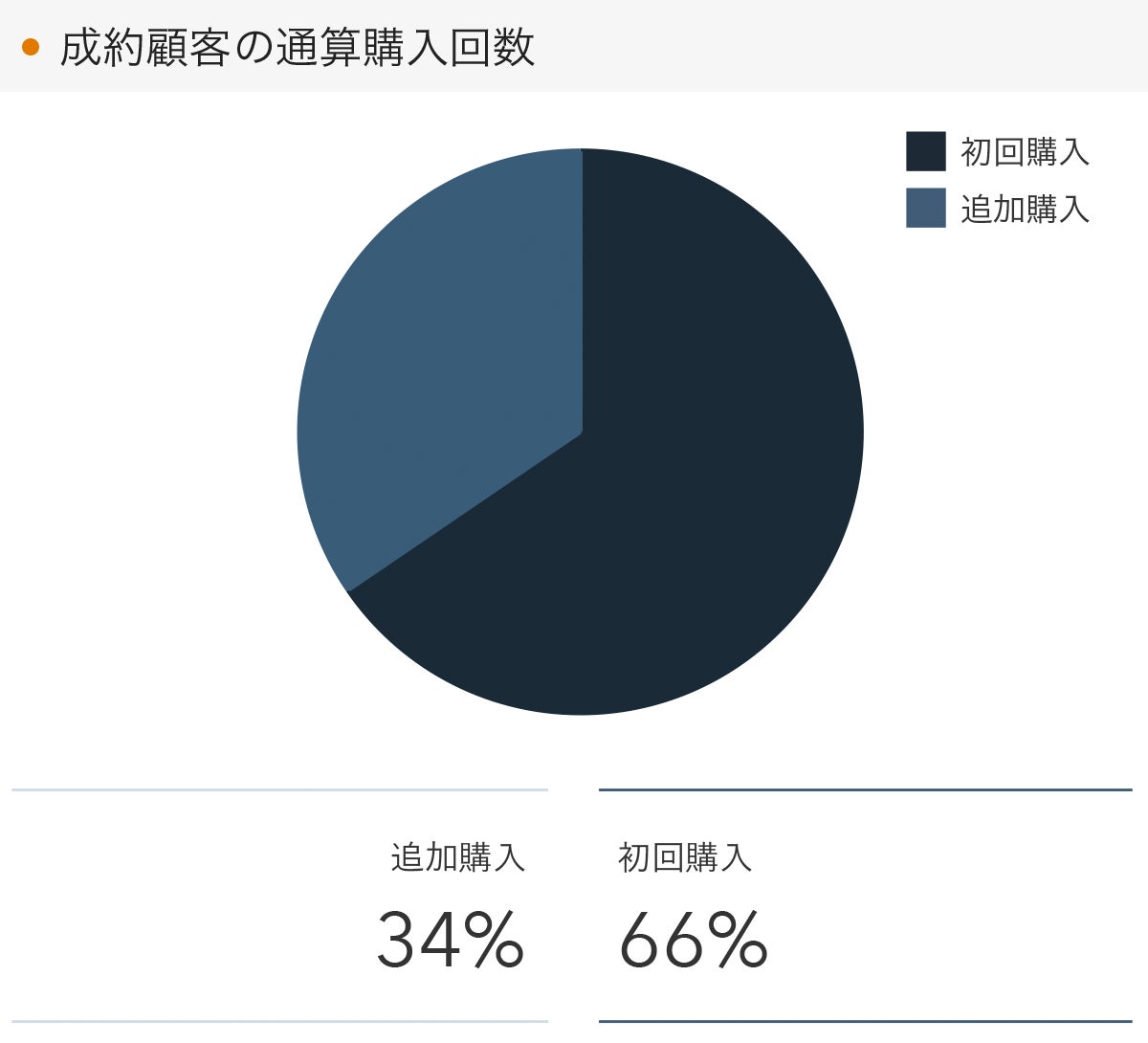 10月度成約顧客のうち、初回購入は66%(前月比4ptダウン)で、以前購入されている方の追加購入は34%となりました。追加購入の割合は2ヶ月連続で増加しています。