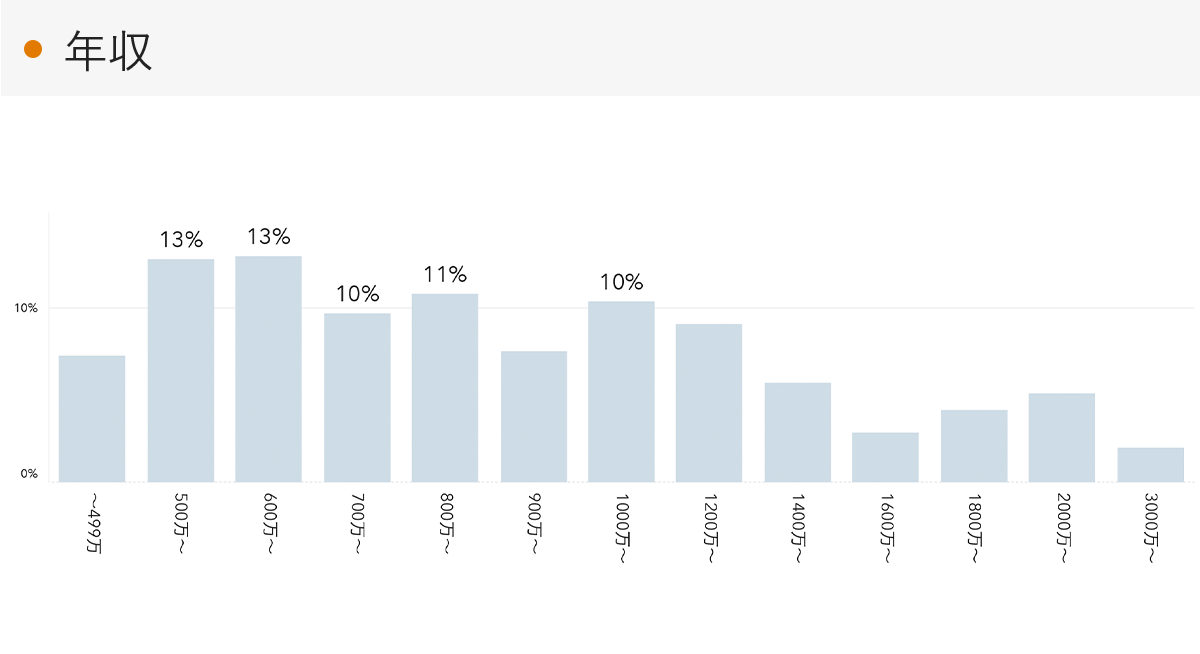 - 成約顧客の年収帯のボリュームゾーンは、500万円台と600万円台(同率13%)