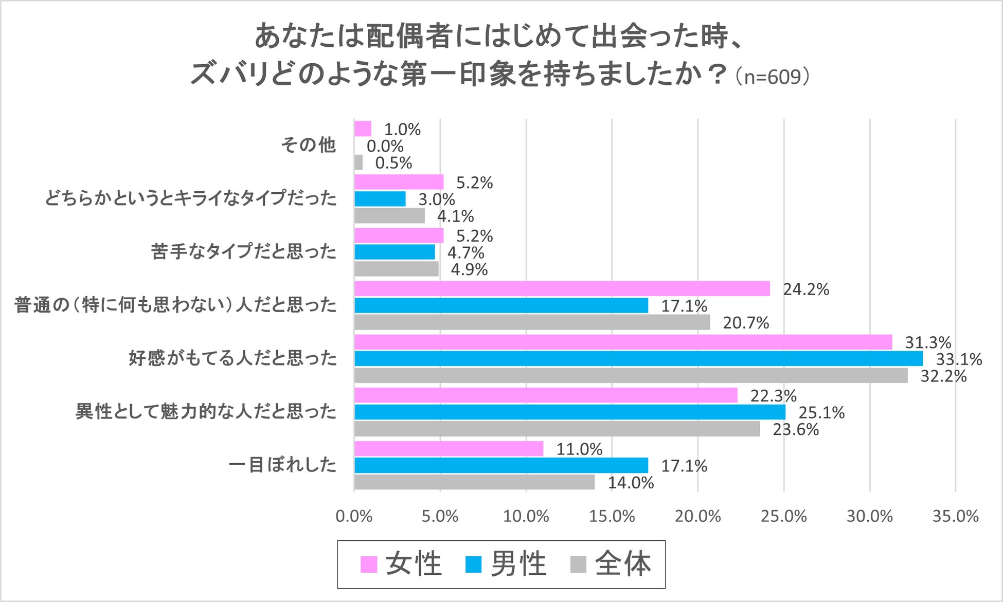 最初の設問では配偶者に初めて出会った時の第一印象について質問をしてみました。