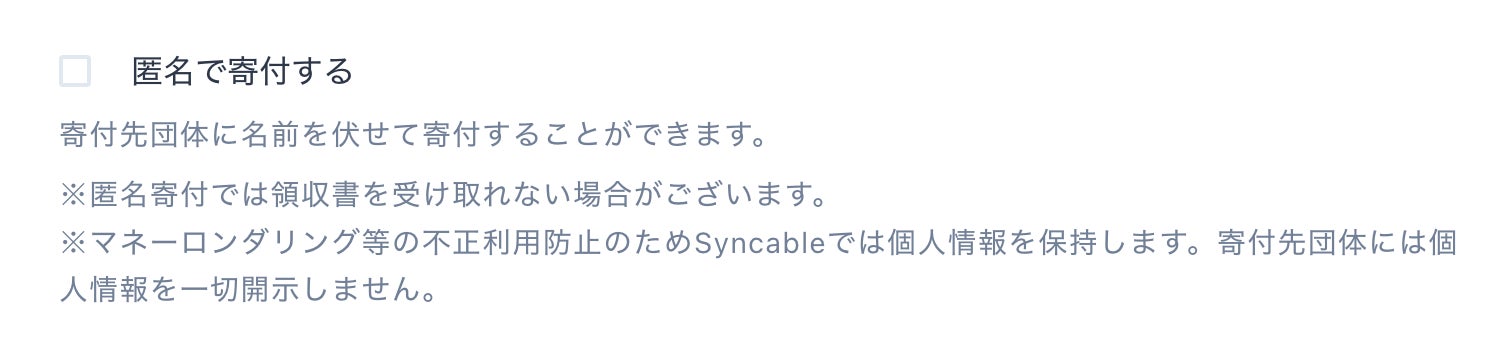 新しい寄付の形を作り出すことで民間の社会保障を拡大する寄付決済プラットフォームSyncableを運営する株式会社STYZ(東京都渋谷区、代表取締役社長:田中 辰也)は、支援者が個人情報を寄付先団体に開示せずに寄付できる新機能「匿名寄付」機能をリリースしました。