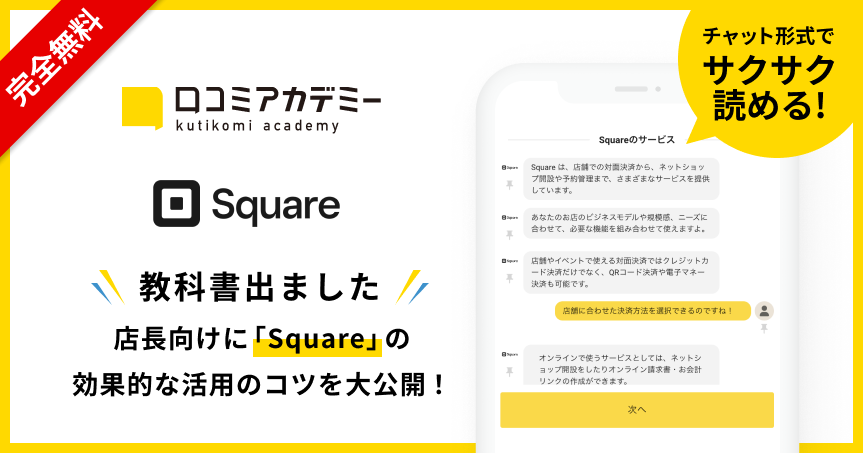 今回「口コミアカデミー」で公開した「Squareの教科書」では、「Square」を運営・提供するSquare株式会社監修の元コンテンツを製作いたしました。