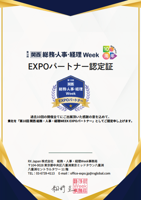 過去10回開催された[関西]総務・人事・経理Weekに全て出展し、盛況な開催やバックオフィス業界に貢献したパートナー企業12社が、「第10回 【関西】 総務・人事・経理WEEK EXPOパートナー」として認定され、リロクラブもその一翼を担い、認定されました。