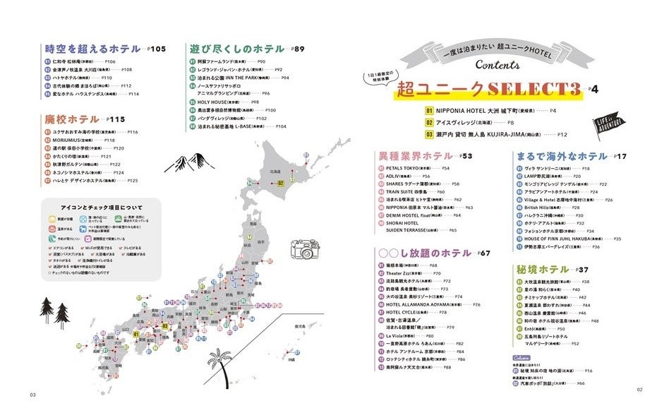 せっかくそんな旅に出かけるのなら、一般的なホテルでは得られない、驚きと非日常感が味わえる施設に泊まってみたいもの。そこで本誌は、日本全国の超ユニークな滞在先を厳選してご紹介。知る人ぞ知る秘境ホテルや、まるで海外のようなフォトジェニックホテルなど、おもしろいテーマごとに集めたホテルを豊富な写真で展開します。おこもりが最高に楽しくなる、ユニークなステイガイドができました!