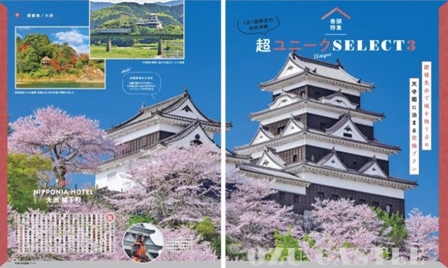 巻頭特集では、1日1組限定で超ユニーク体験ができるホテルをご紹介。本物のお城に泊まれる『愛媛県/NIPPONIA HOTEL大洲 城下町』に、すべて氷でできたホテル『北海道/星野リゾートトマム 氷のホテル』。そして