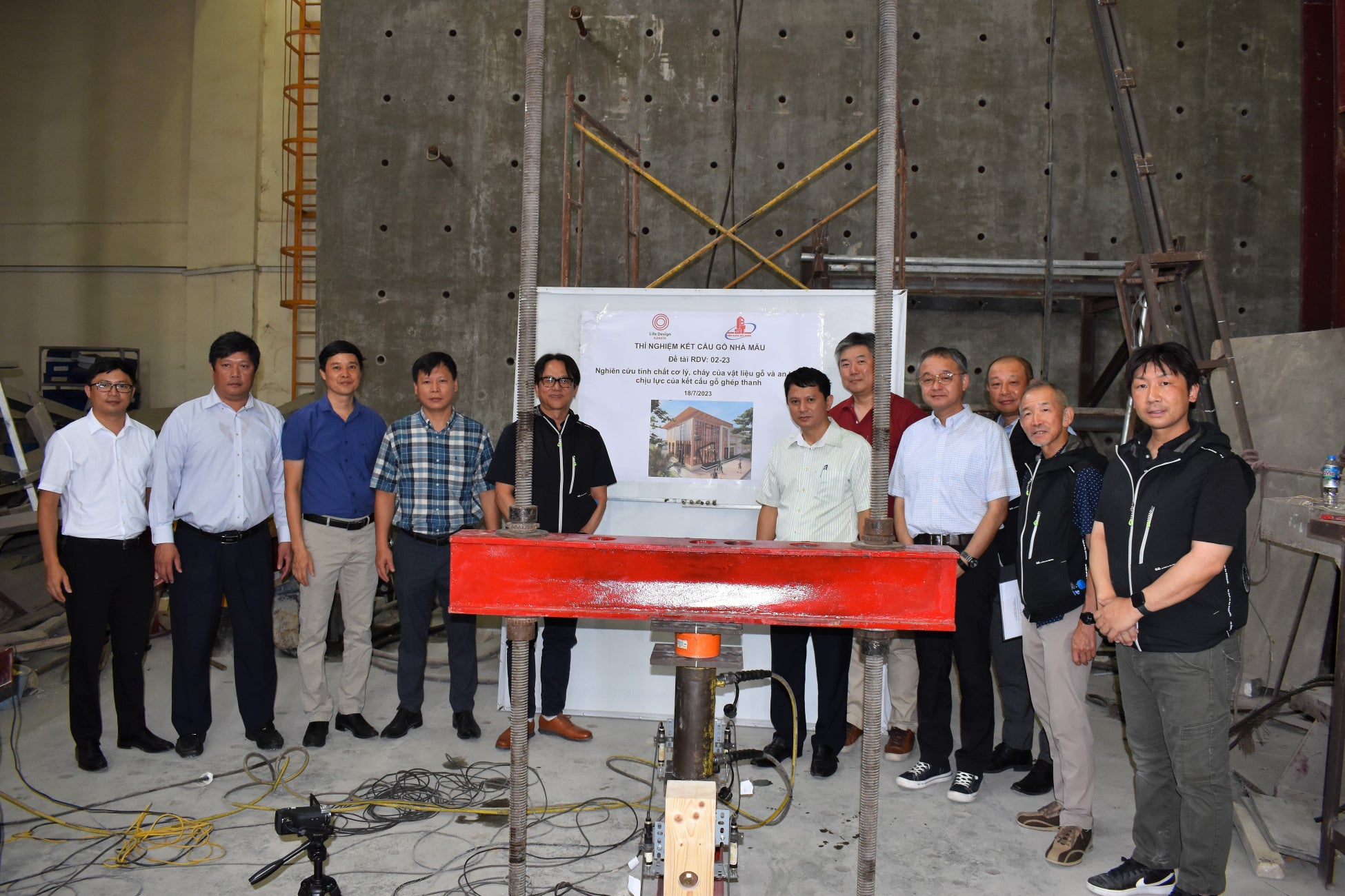 2023年7月17日(月)・18日(火)には、ベトナム現地に赴き、ベトナム建設省(MOC)傘下の建築研究所であるIBSTの試験室にて、梁の曲げ試験や接合部のせん断・引張り試験、木材燃焼試験など木材・木構造に関する試験方法を共有しました。