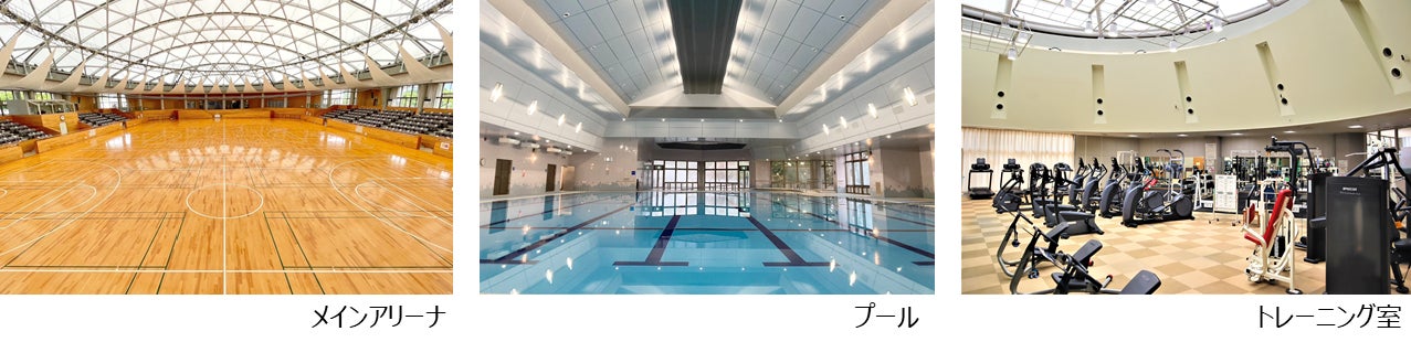 <主な施設>メインアリーナ、サブアリーナ、武道場、弓道場、トレーニング室、25mプール