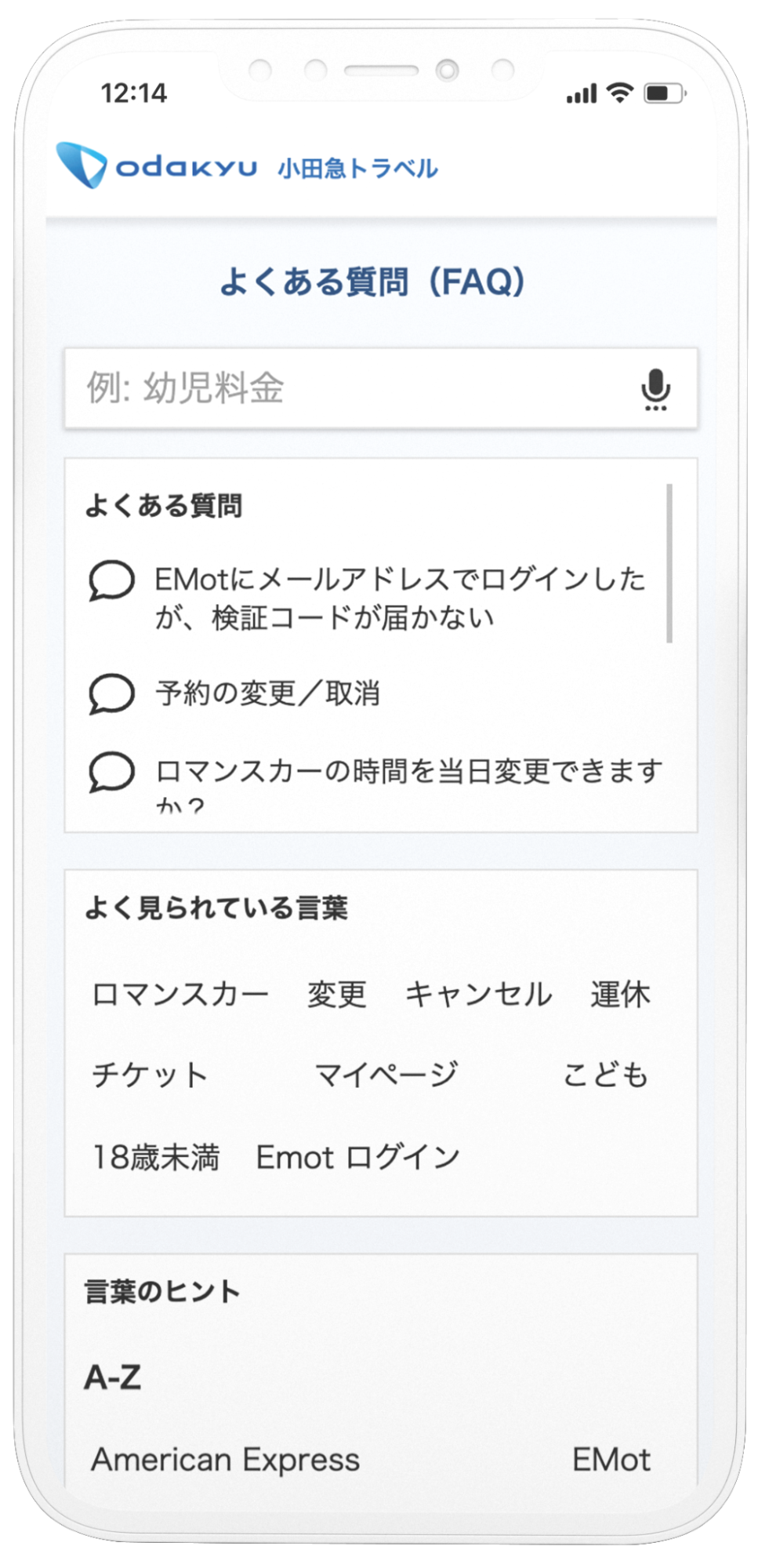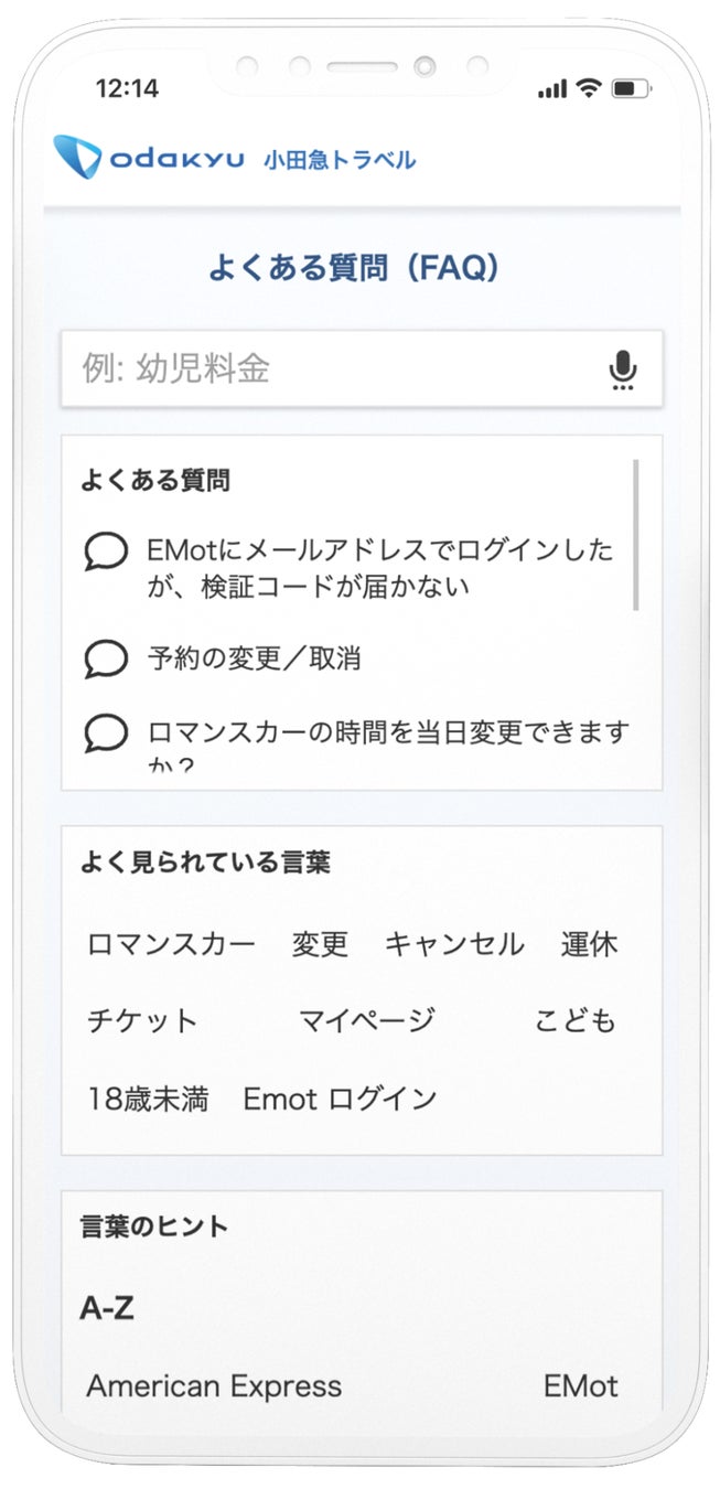 その中でも特に多そうな質問、例えば「ロマンスカーの時間を当日変更できますか?」などは、すぐクリックできる位置に上位表示し、ワードを入力しなくても回答が得られるようにしました。