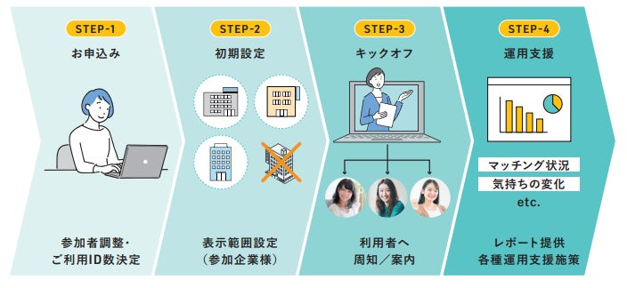 大手企業のご担当部署(主に女性活躍推進・DE&I担当部署)と利用ID数に応じてご契約となります。料金等詳細はお問合せよりご連絡ください。導入後も積極的な伴走支援によって、目的達成のためのサポートをします。