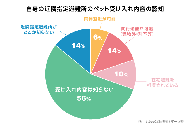一方で、近隣避難所のペットの受け入れ内容を把握している人は30%にとどまっています。