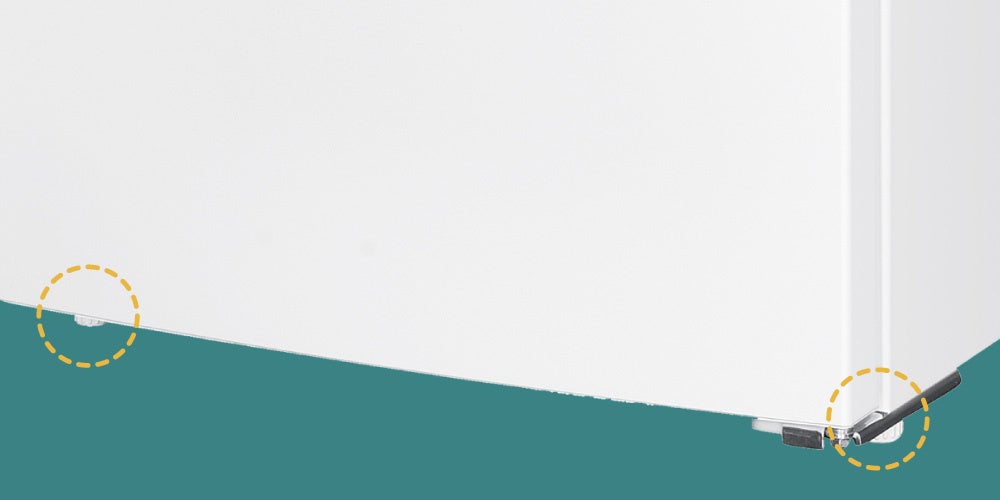 本体底面には、調節脚が取り付けられております。高さを調節して本体を水平に調整することができるので、底面の設置面積が減少し、床へのダメージを防止いたします。