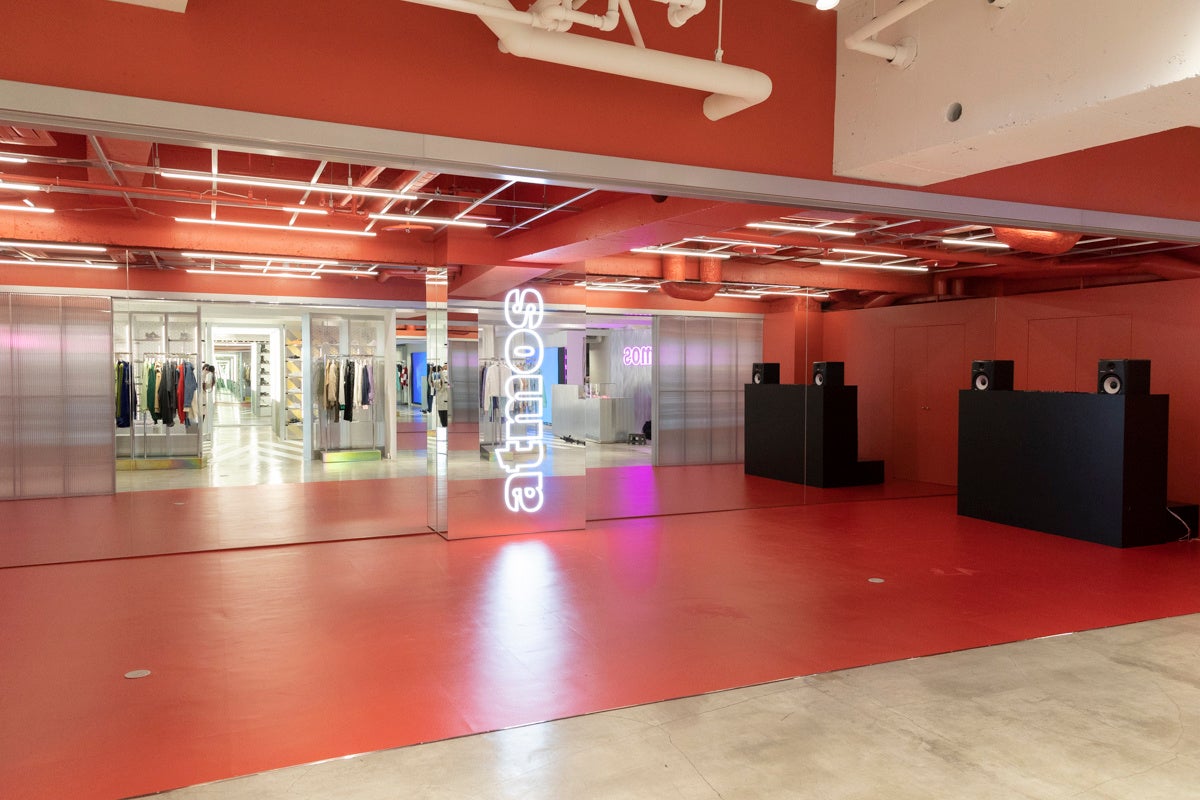 atmos pink flagship 原宿店は、セレクトショップとして日本で初めて、ダンサーが無償で練習できる場所(スタジオ)を提供するなど、これまでの店舗に比べ、よりダンスにフォーカスした店舗になっています。今回のリニューアルで、Web storeもダンスにフォーカスしたものとなったり、より一層ダンスカルチャーとストリートカルチャーが融合したatmos pinkらしい空間になっています。