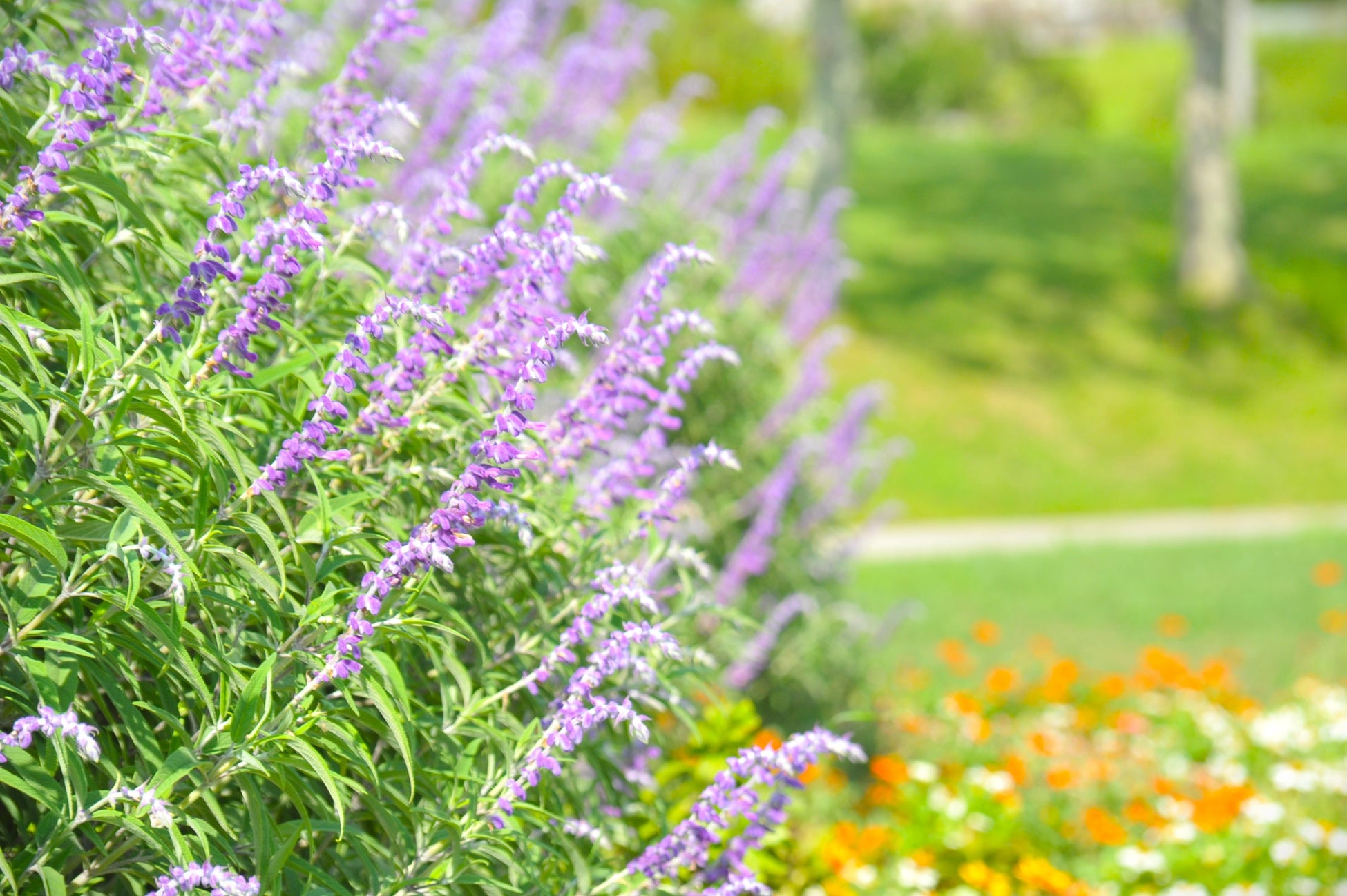 また、同エリアにて紫色が目に鮮やかでふかふかした花穂が可愛らしいメキシカンブッシュセージも開花中。キバナコスモスの鑑賞とあわせてお楽しみ下さい。