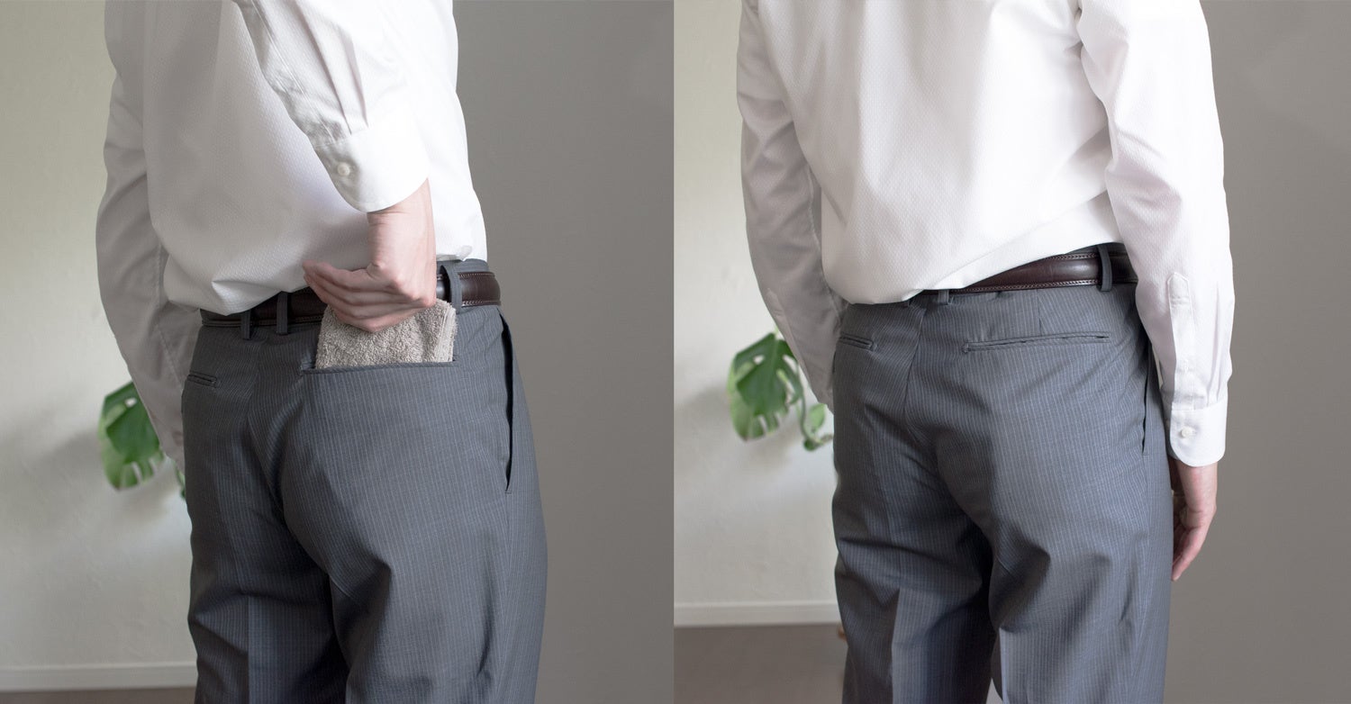 2.ズボンのポケットにもはみ出さず収まってくれるサイズ感。鞄を持ち歩きたくない時にも便利です。