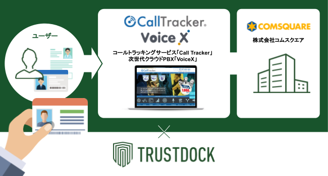 コムスクエアは、TRUSTDOCKが提供するeKYC本人確認サービスにより、「Call Tracker」「VoiceX」の更なる安心・安全なサービス提供が可能となります。