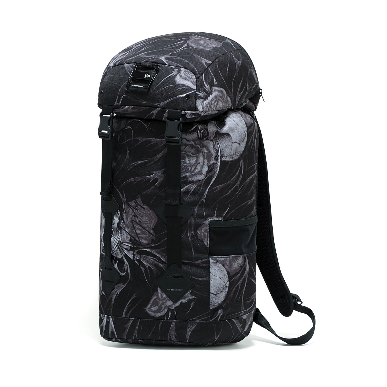 このコラボレーションシリーズでは初となる、総柄プリントを施した[Rucksack]。これまで展開されてきた[Rucksack]の両サイドにアウトポケットを配することで、より使い勝手の良さを追求。アーカイブモチーフ「Skull & Rose(スカルローズ)」のアートワークを全面にプリントし、中央には「ヨウジヤマモト」のシグネチャーロゴを刺繍でデザイン。シグネチャーロゴがデザインされた特性の[Cap Clip]が標準装備されている。