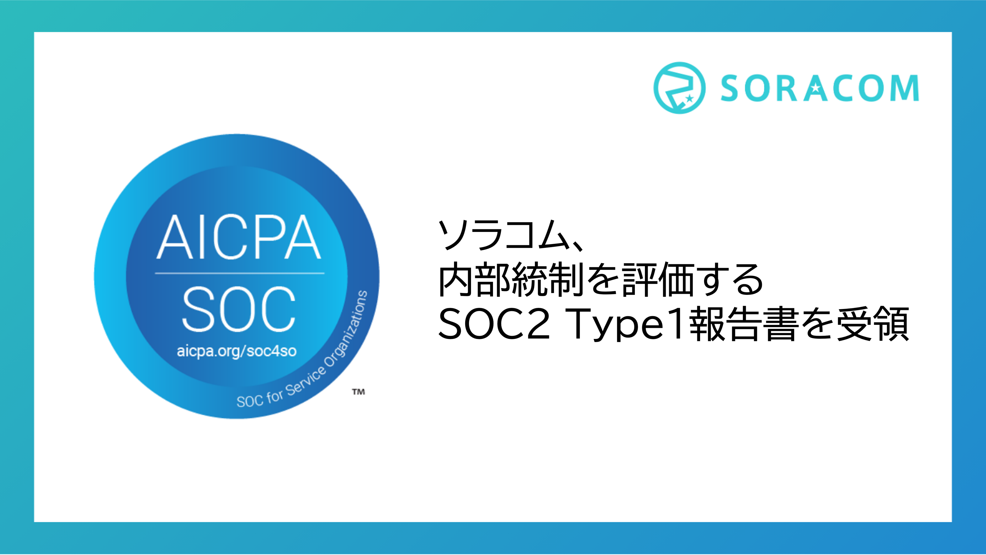 ソラコム、内部統制を評価するSOC2 Type1報告書を受領