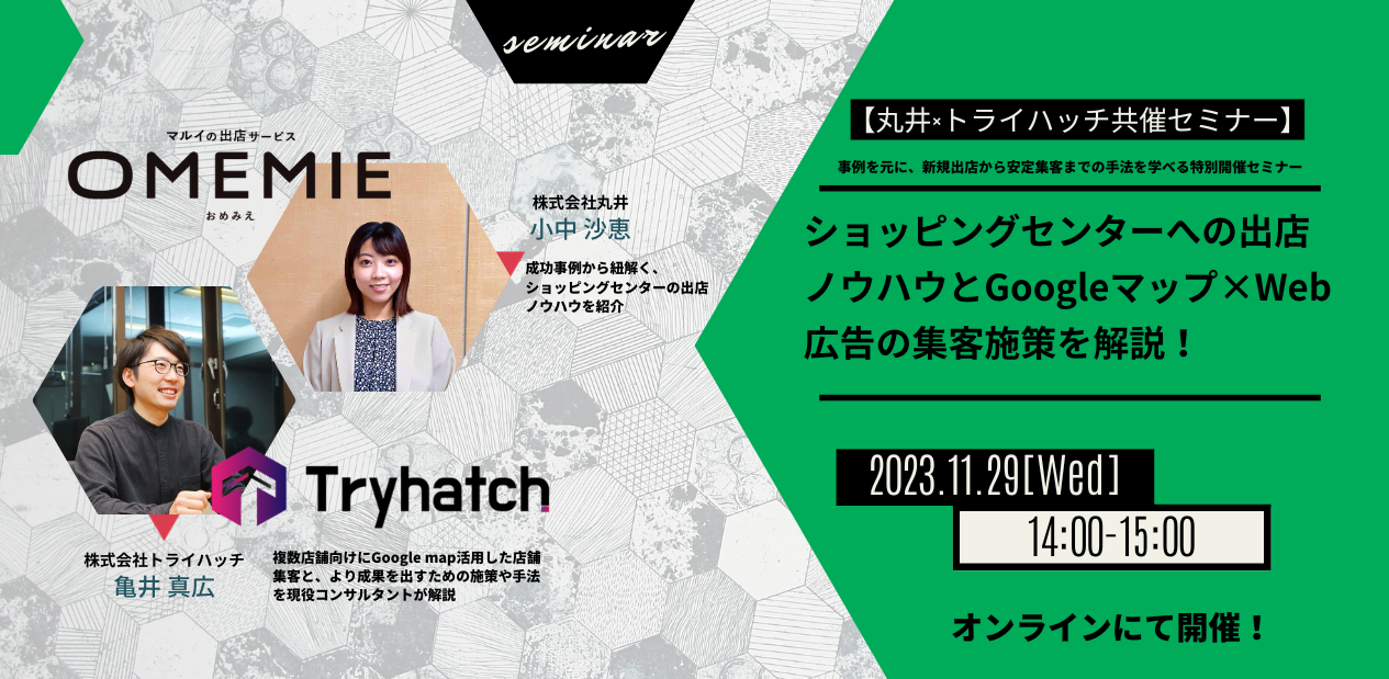 【11月29日(水)14:00~15:00】丸井×トライハッチ共催セミナー「ショッピングセンターへの出店ノウハウとGoogleマップ×Web広告の集客施策を解説!」を開催