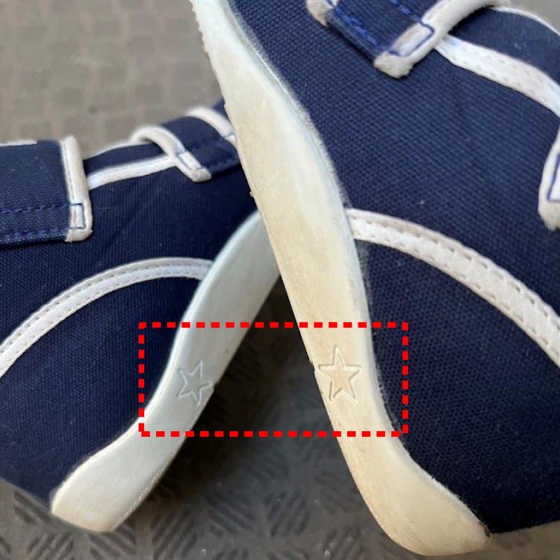 メイドインジャパンの丁寧なモノづくりで仕上げた1足です。両足のアウトソールの内側には「☆」マークがついており、「☆」マーク同士を合わせて置くことで、日本特有の玄関で靴を脱いだ際に揃えて置く習慣を育みます。「☆」マークは凹で彫られているため使用を重ねて側面が汚れると「☆」マークがより見えてくるデザインです。