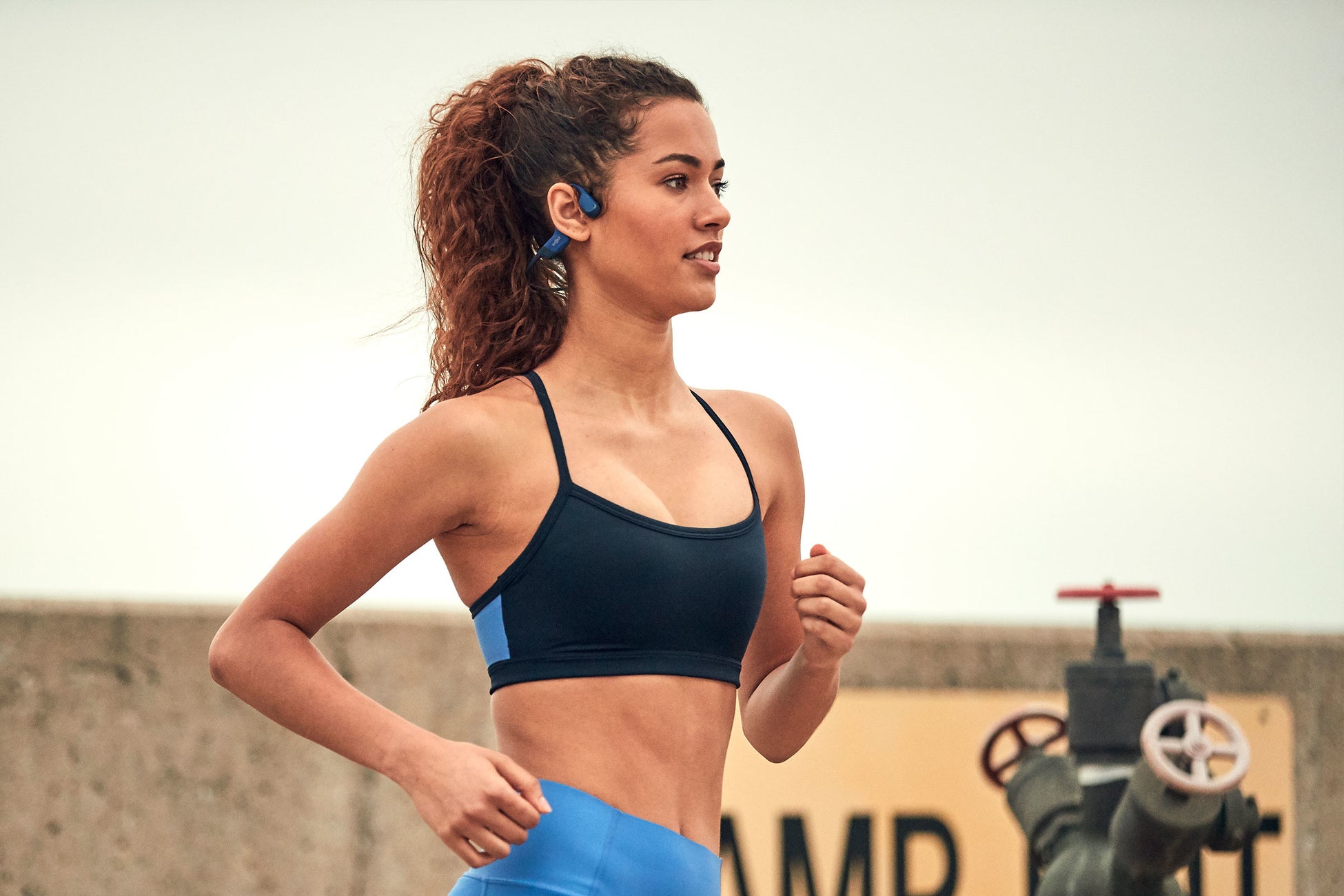 オープンイヤーデザインは、爽快感のあるオーディオ体験を提供します。特許取得済みの骨伝導技術により、耳を塞ぐことなく周囲の状況を把握しながら快適に音楽を楽しむことができます。OpenRunを使うことにより、ジョギングや街歩きをしながらも、周囲の歩行者や自転車などに気を配ることができます。