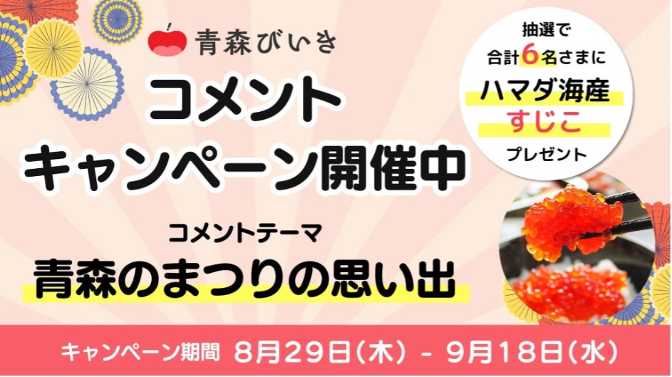 コミューンが総合支援する青森県公式ファンコミュニティ「青森びいき」、オープン1ヶ月記念&大入り御礼のキャンペーンを実施。青森のまつりの思い出を投稿いただくと抽選で「すじこ」をプレゼント