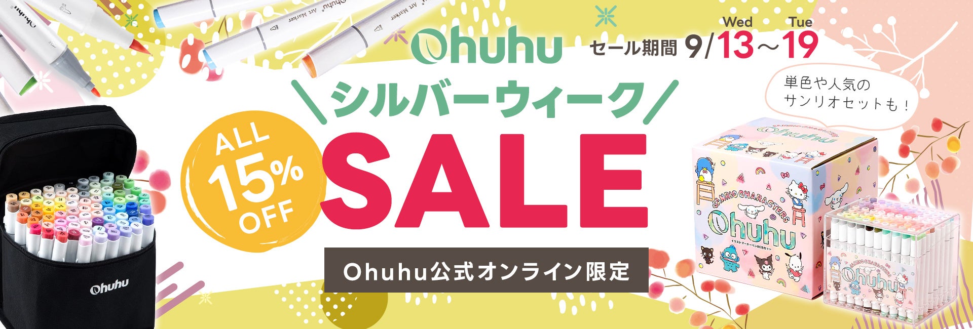 【Ohuhu】画材や雑貨など全品15%OFF!シルバーウィークセールを開催