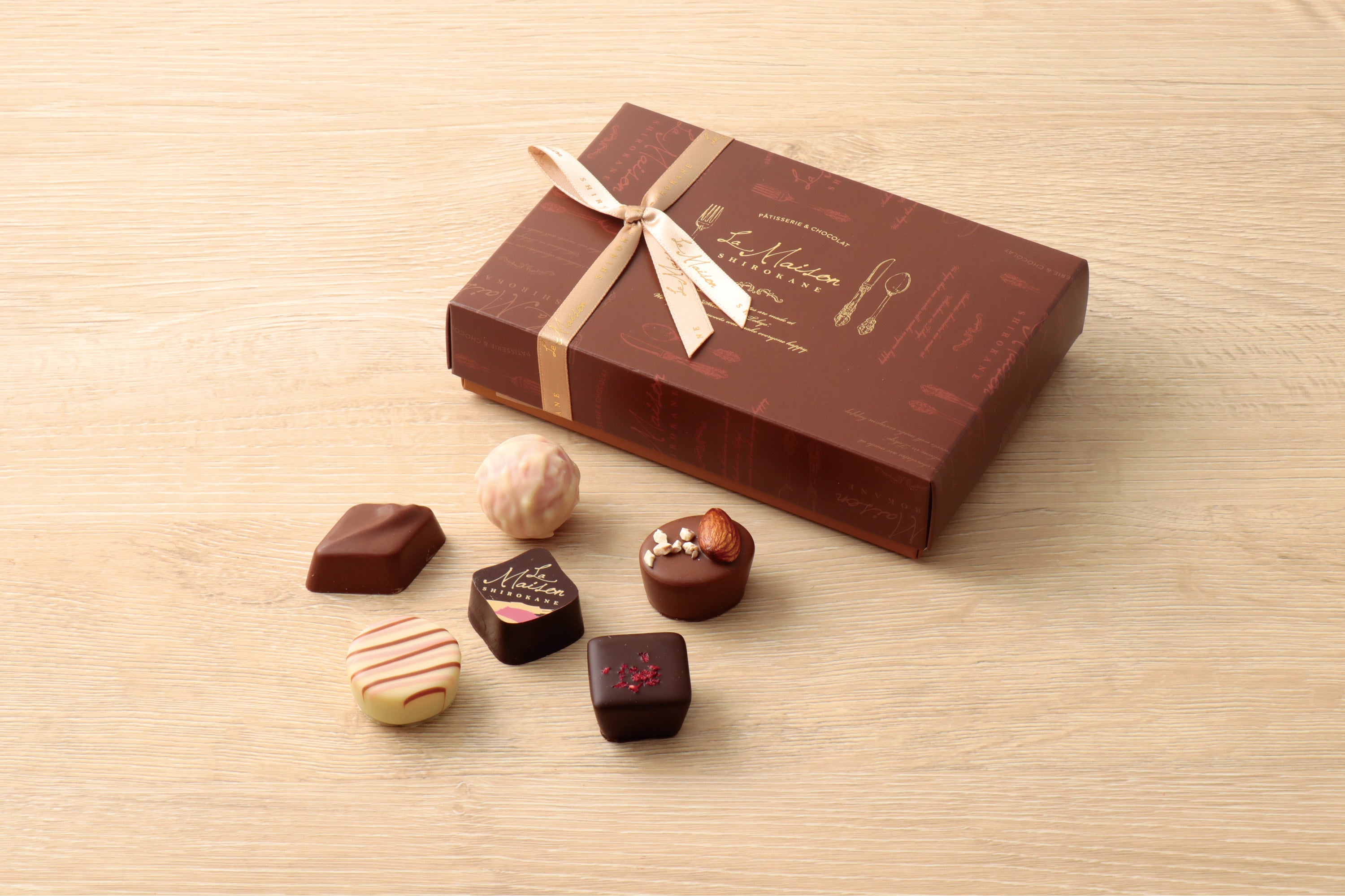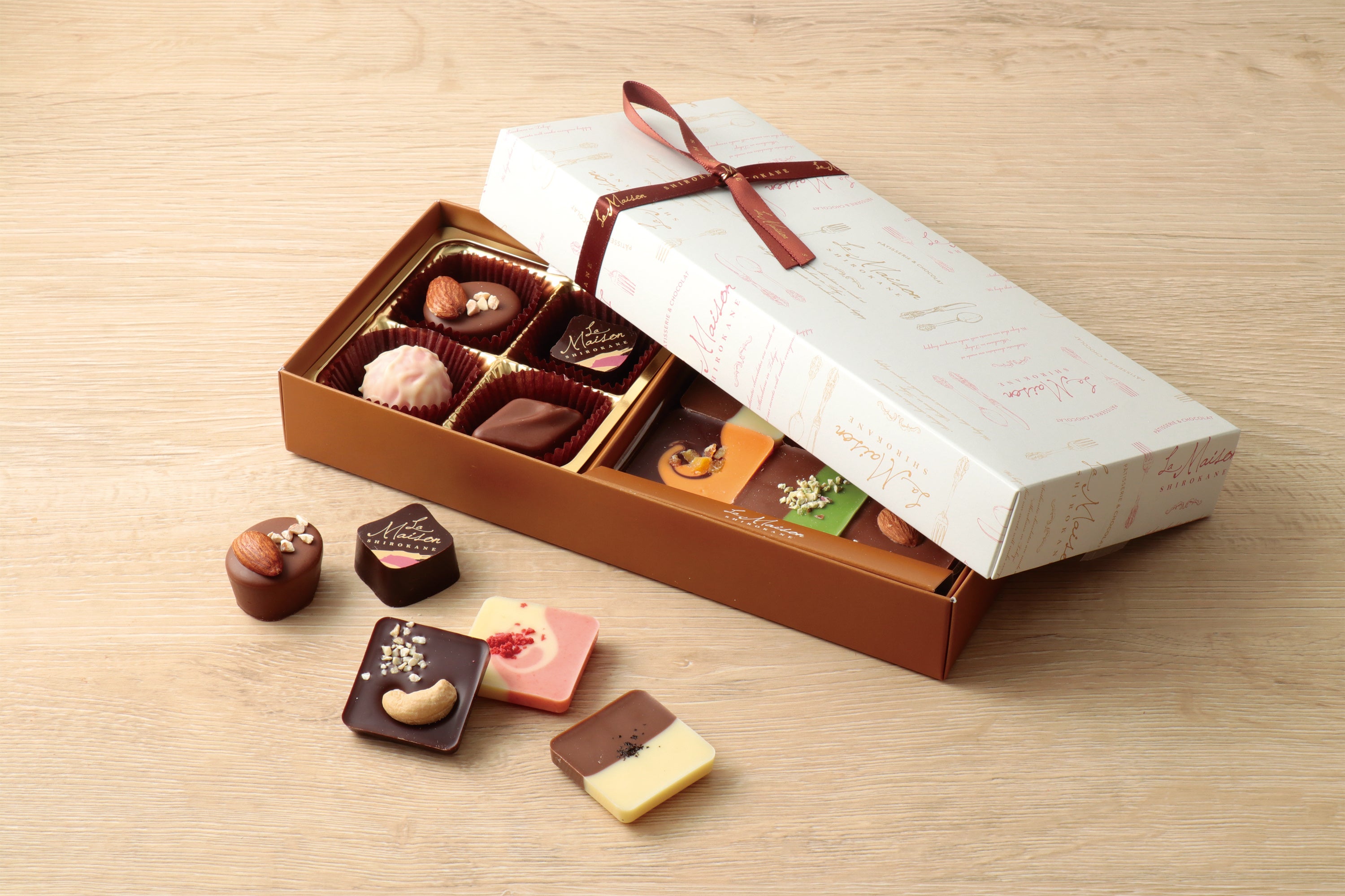 ラズベリーガナッシュ、国産栗ガナッシュや塩キャラメルガナッシュ、バニラ風味あまおう苺クリームのショコラなど、ショコラと素材の組み合わせにこだわった多彩なフレーバーを1つのボックスに詰め合わせました。