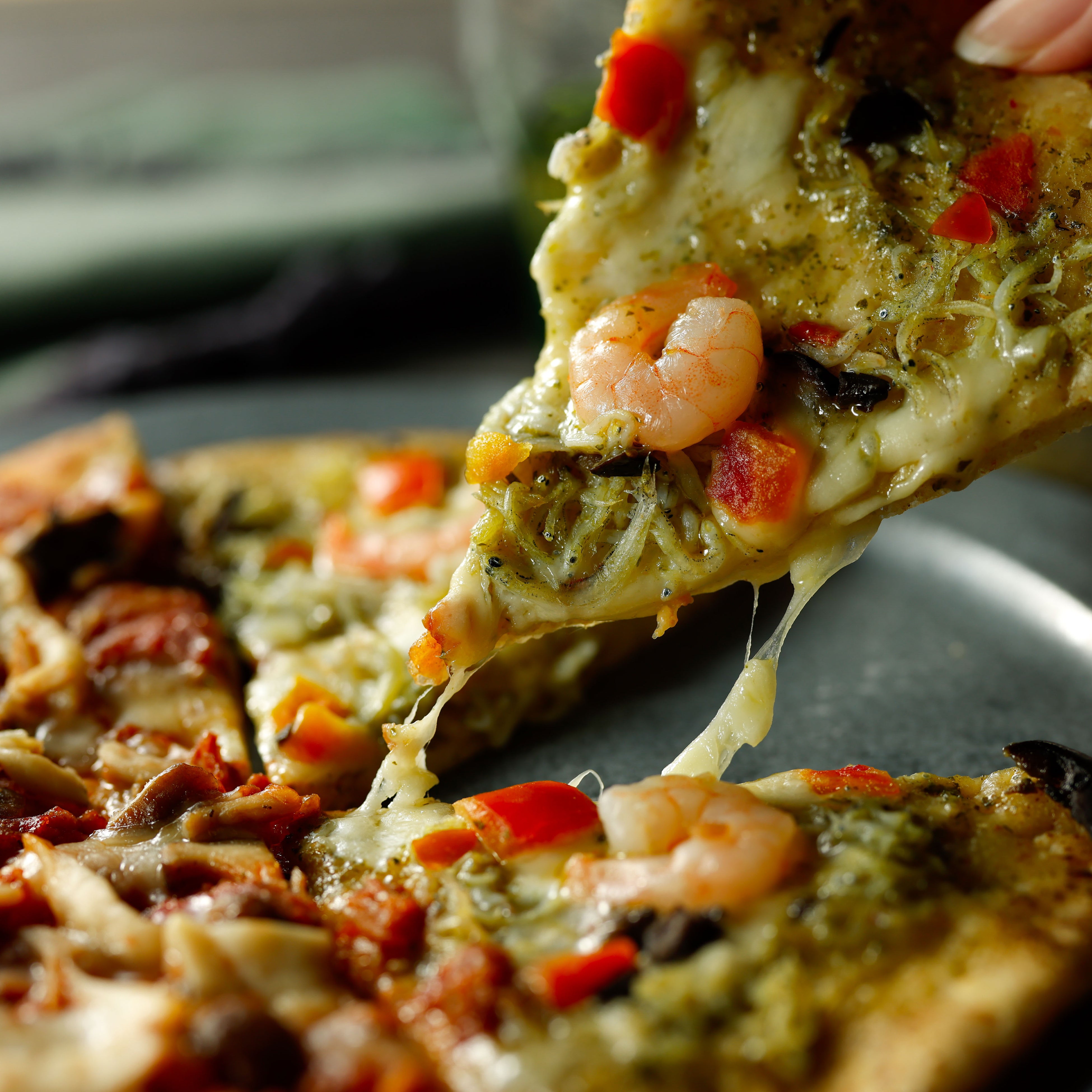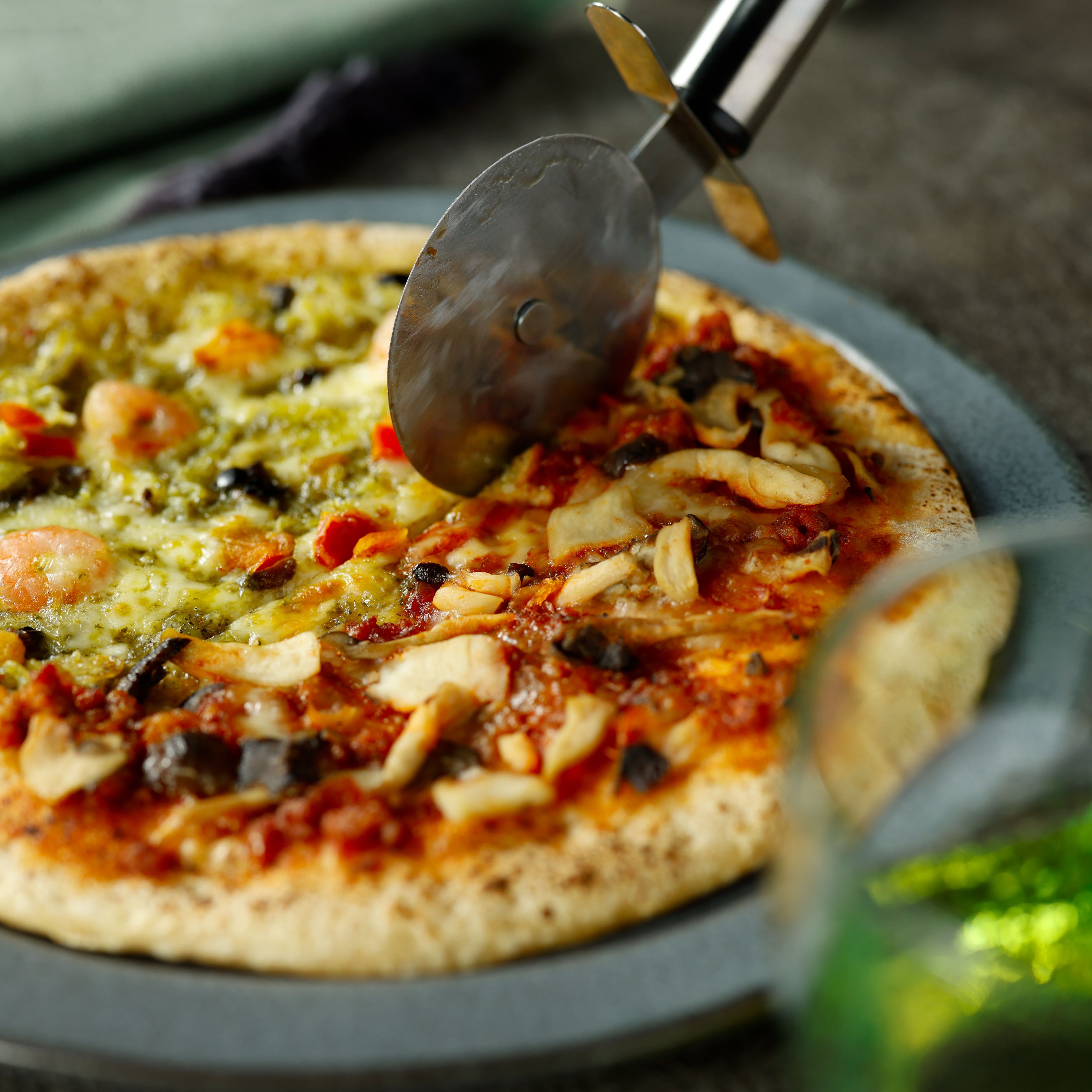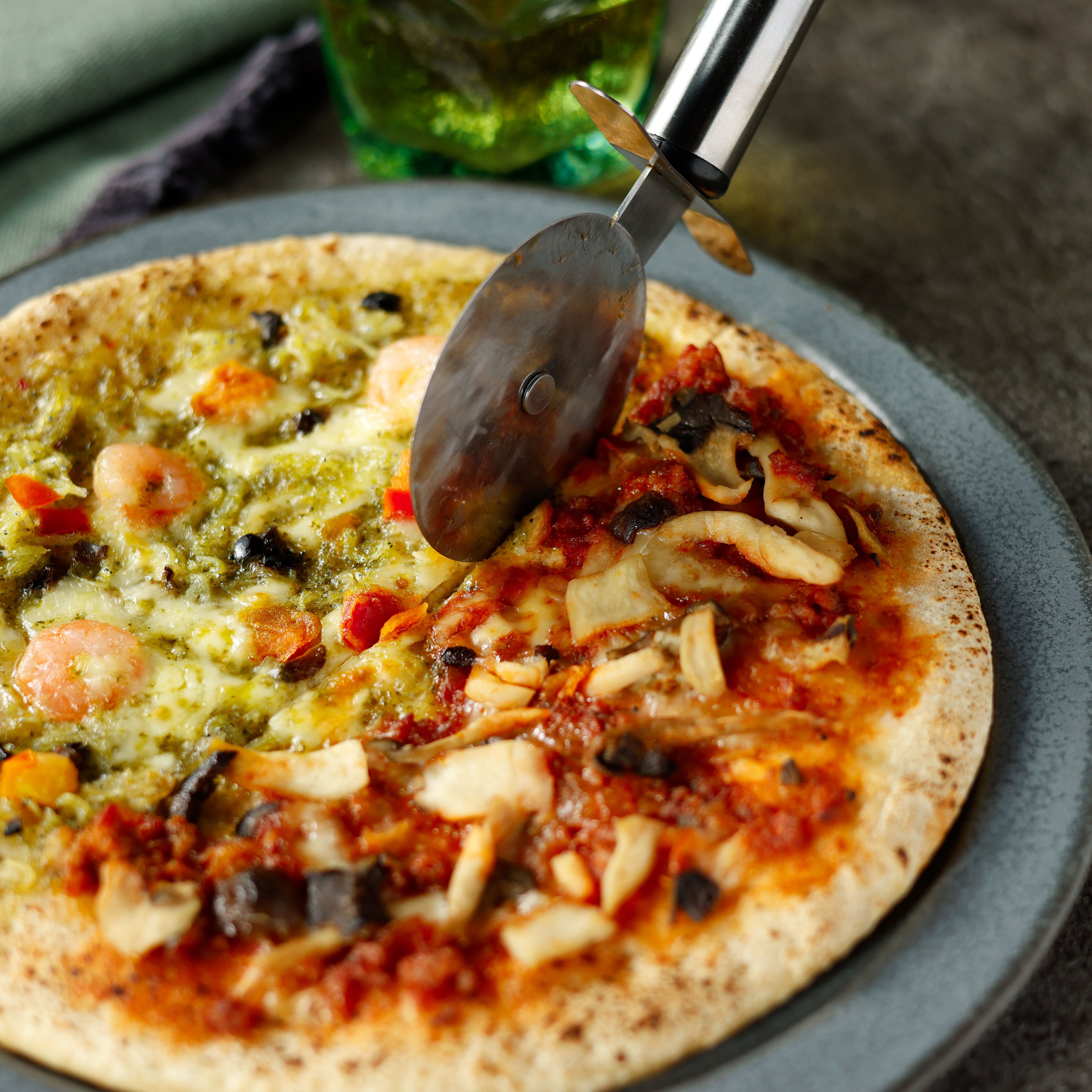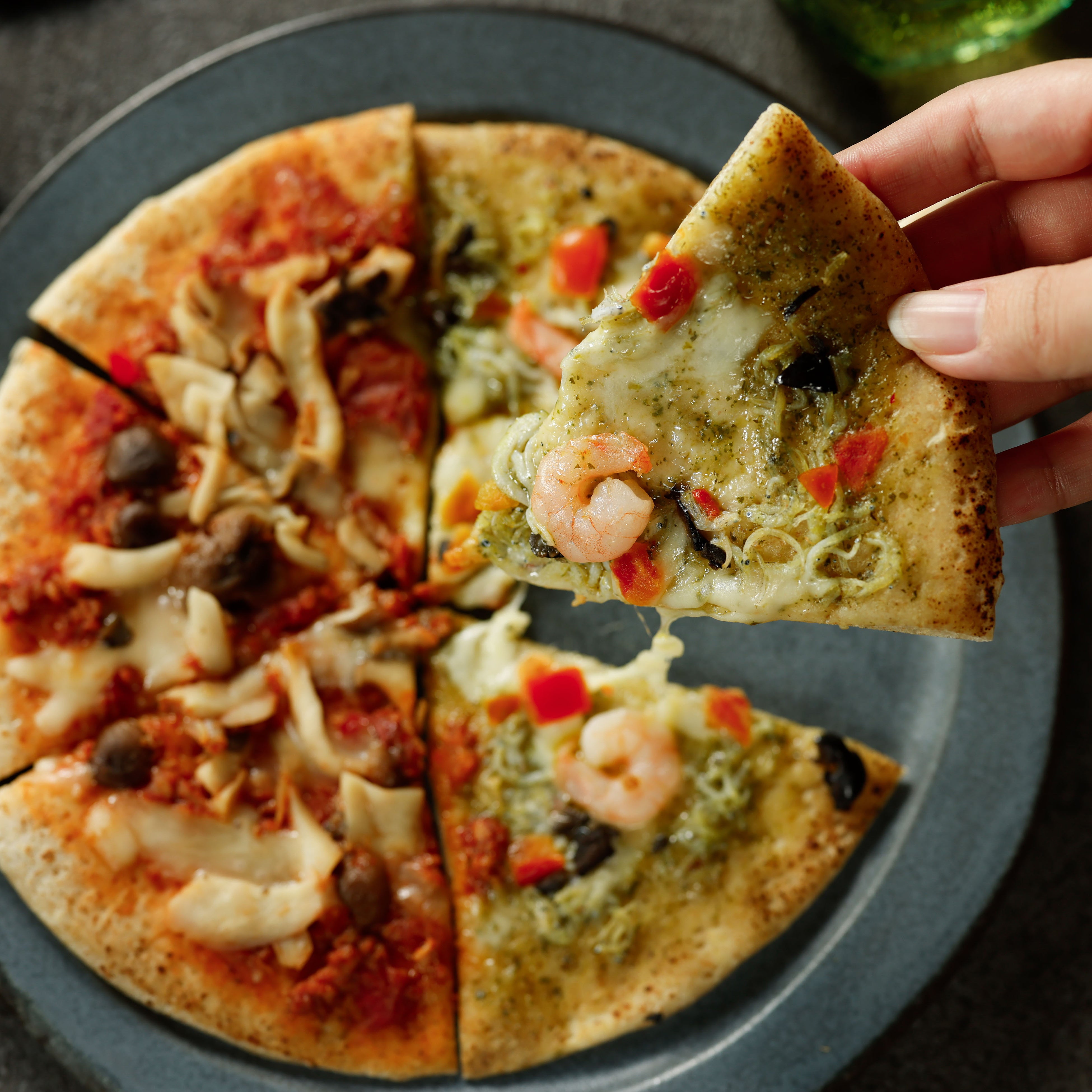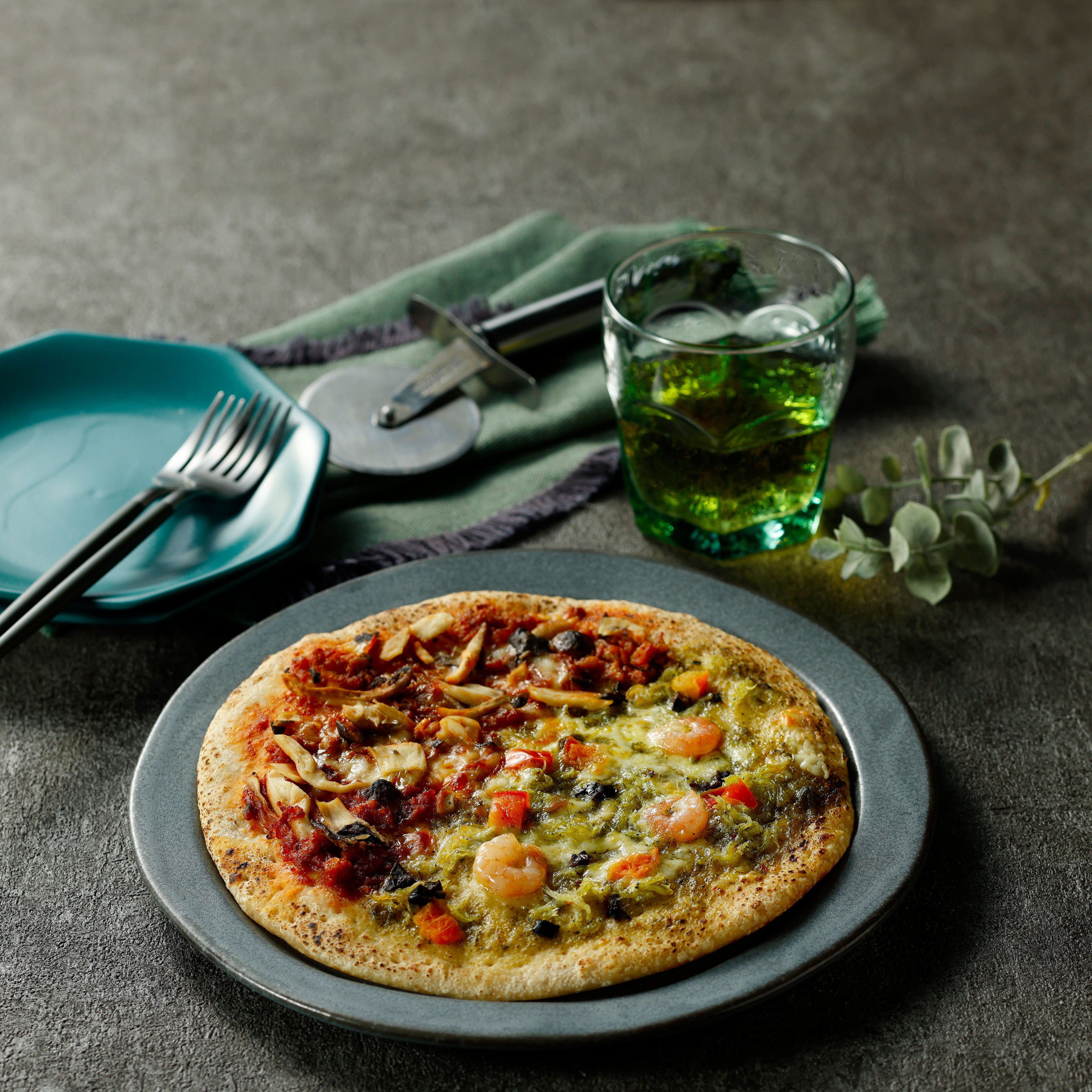 【全粒粉入りピッツァ バジルシーフード&きのこボロネーゼ風】