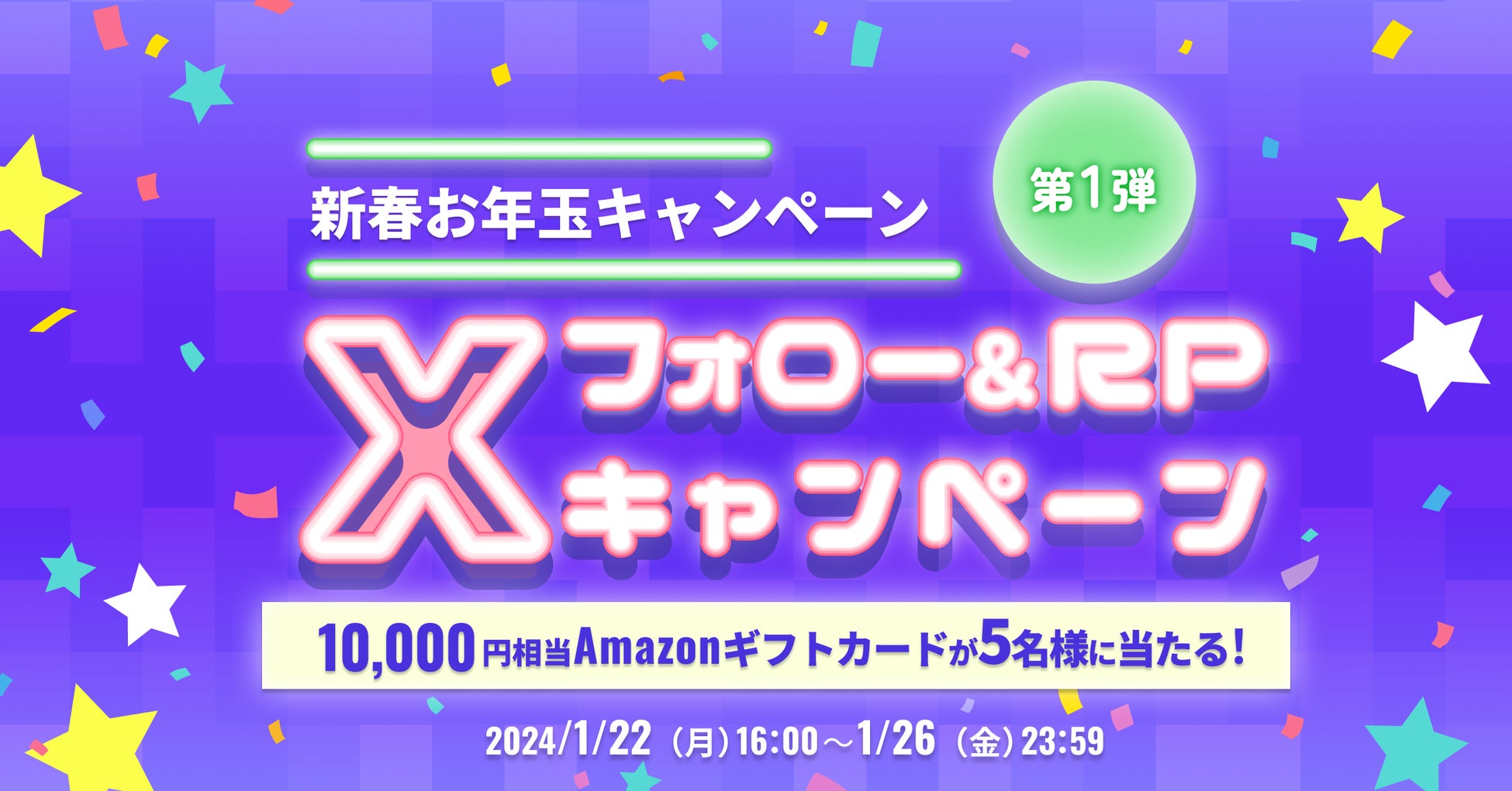 ・当該キャンペーンは当社が提供するものであり、Xが支援、承認、運営、関与するものではありません。