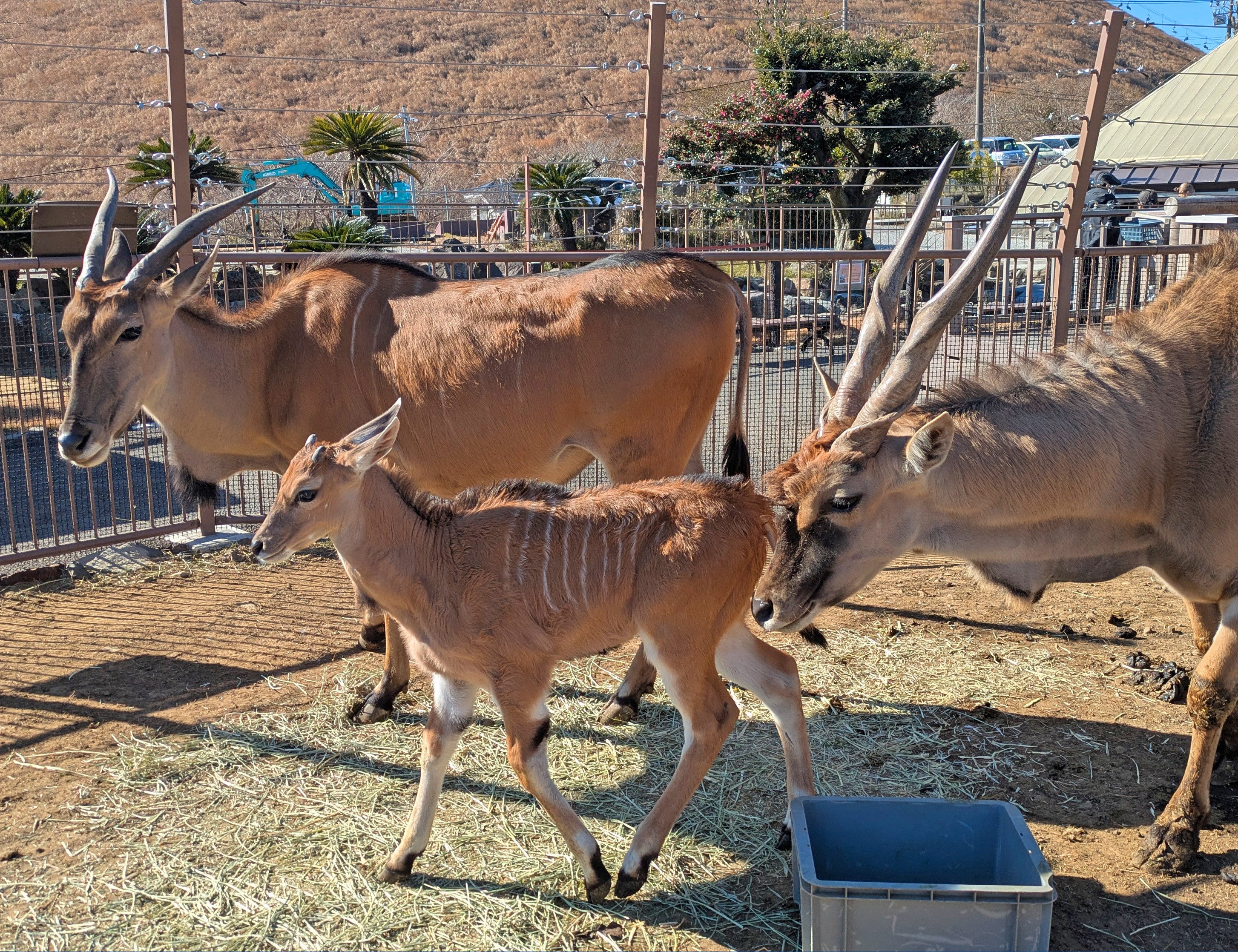 伊豆シャボテン動物公園では、2025年12月15日(月)に、ウシ科の大型草食動物・エランドのオス「ビスケット」とメス「メープル」の間に1頭のオスの赤ちゃんが誕生いたしました。