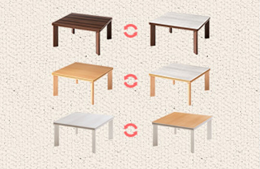 こちらの天板はリバーシブル仕様となっており、お持ちのインテリアや季節に合わせて天板の表裏替えることで好みに合わせた空間づくりを楽しむことができます。
