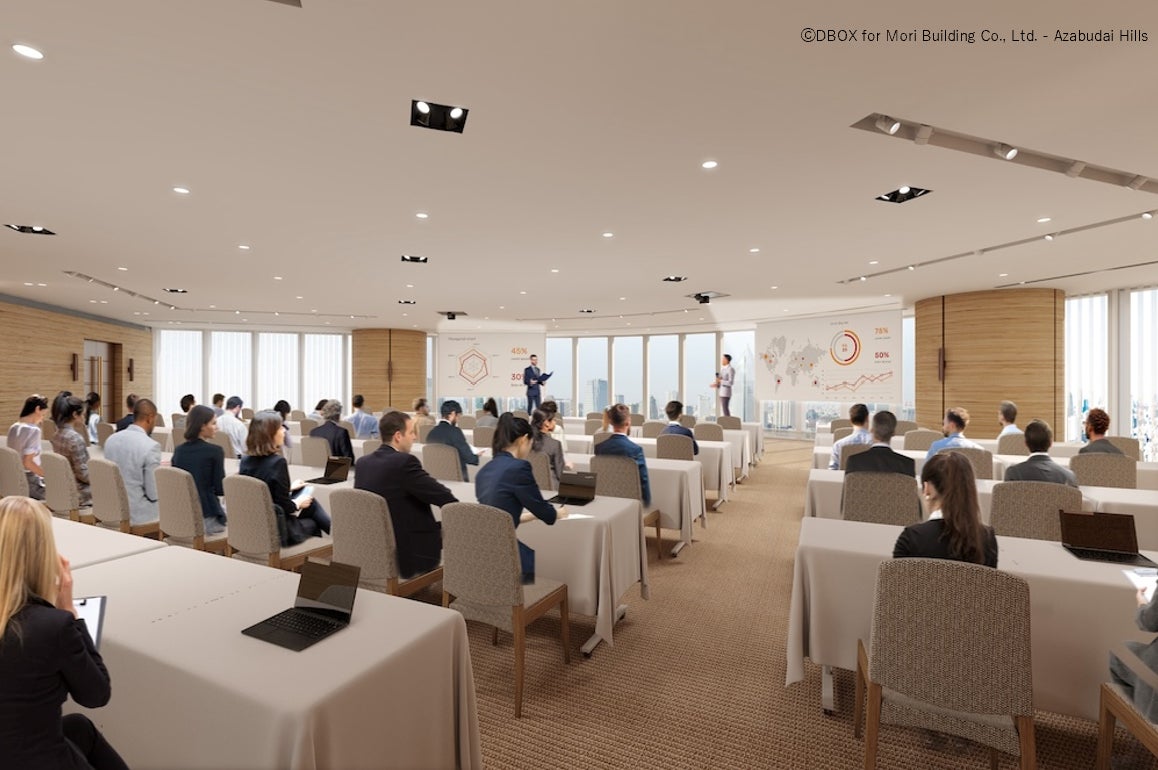 ミーティングや貸切対応、パーティーなど、多様な目的に対応する、「麻布台ヒルズ」唯一の大型ダイニングスペース。通常時はドリンクや軽食、「Dining 33 Patisserie a la maison」の本格的なスイーツを提供するカフェ&バーを設置しています。また、8m幅のダイナミックな階段と9mの高天井を誇る「大階段」は、日常はワーカーの活発なコミュニケーションや憩いの場となり、イベント開催時には会場やプレゼンテーションを効果的に演出します。