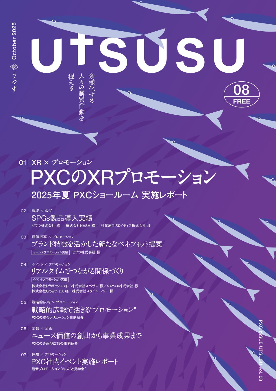 Corporate Promotion DX CompanyのPXC株式会社(https://pxc.co.jp )は、自社が提供するサービスや業界のトレンド情報、その他自社のプロモーション実績などを掲載した「UTSUSU(うつす)vol.8」を10月10日に発刊しました。