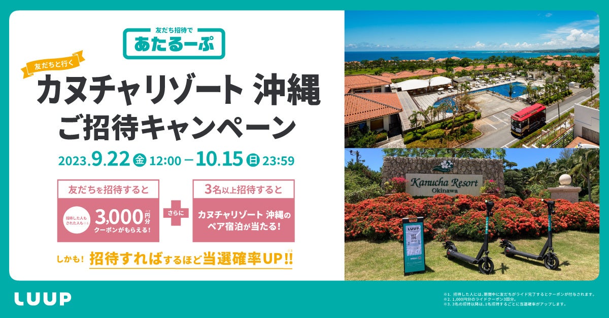 ※2 Luupプレスリリース「沖縄県名護市のカヌチャリゾートで「LUUP」の電動キックボードがご利用可能になります」(https://luup.sc/news/2023-07-14-kanucha/)