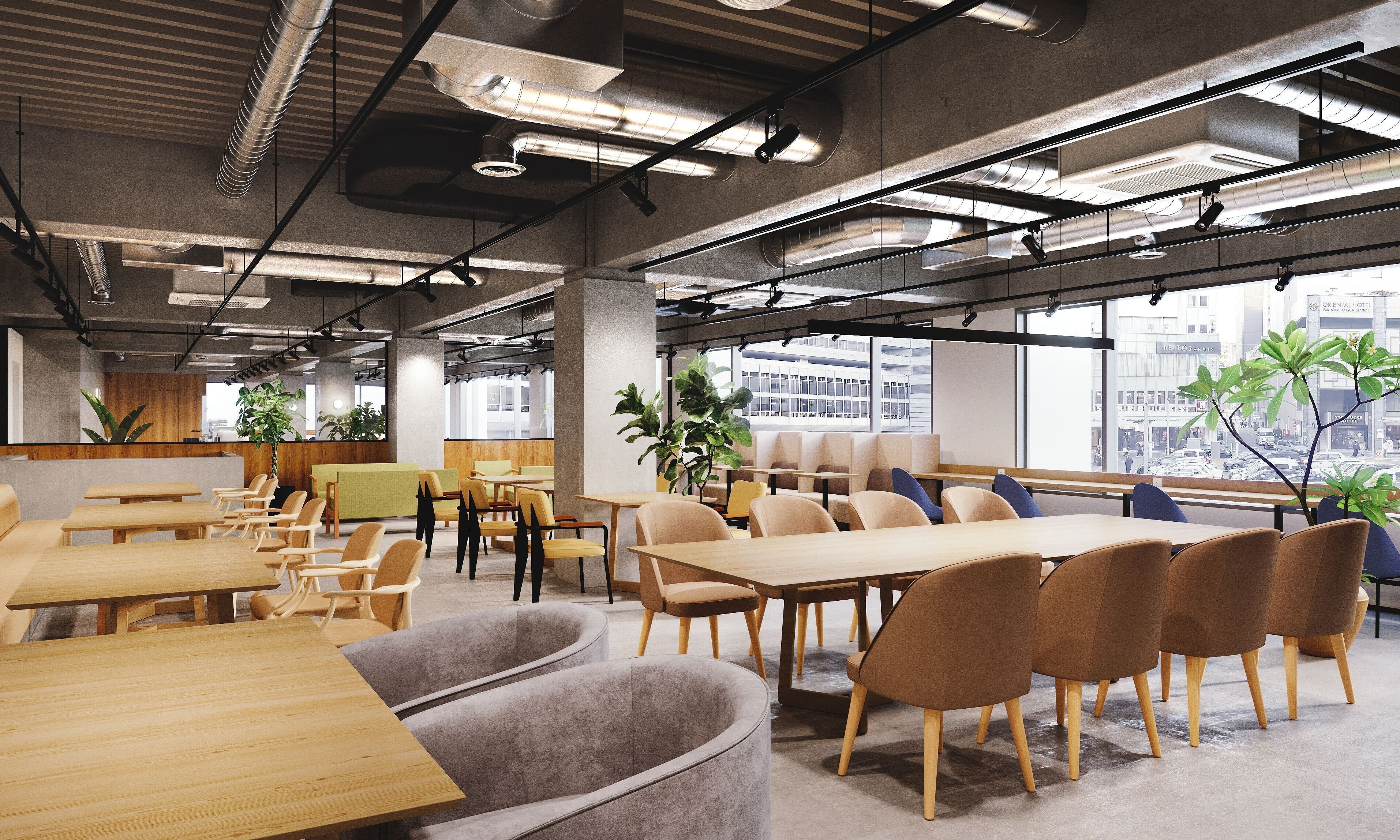 施設のコンセプトは「働く・つながる・発信する」を一つのフロアで実現すること。カフェエリアやシェアラウンジは、ワークショップやポップアップイベントにも開放されており、新しいカルチャーやブランドとの出会いの場としても機能します。