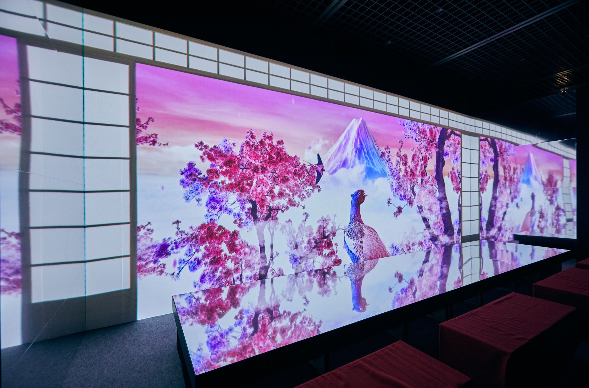 立体映像空間で鮮やかな浮世絵の世界に没入できる体感型デジタルアートミュージアム。花鳥画の中にストーリーを創り上げた繊細な筆捌き、美しい色彩表現で圧倒する日本の美と花の世界。