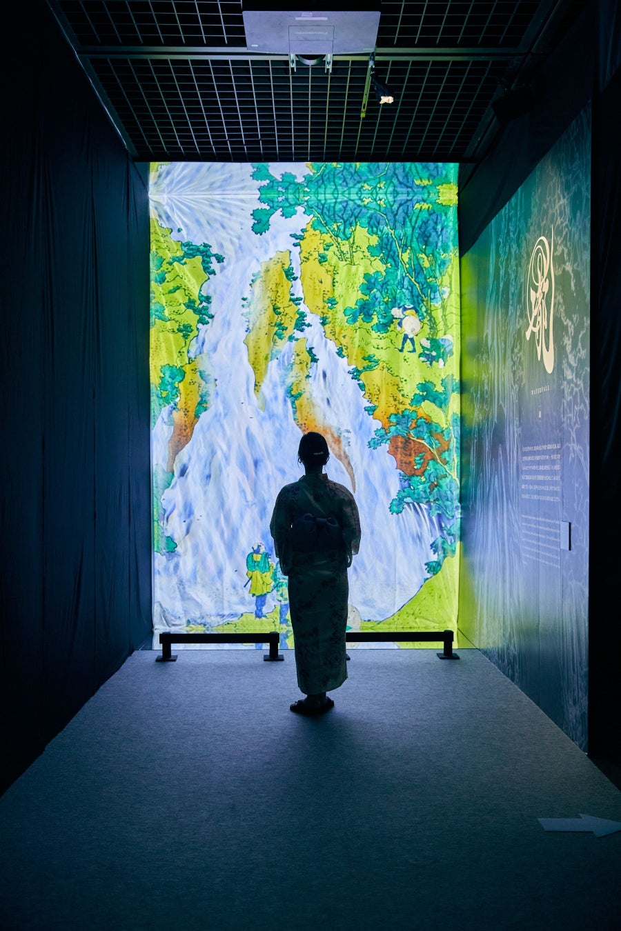 「動き出す浮世絵展」は、葛飾北斎、歌川国芳、歌川広重、喜多川歌麿、東洲斎写楽、歌川国貞など世界的な浮世絵師の作品300点以上をもとに、3DCGアニメーションやプロジェクションマッピングを駆使して大人から子どもまで楽しめるグラフィカルなデジタルアート作品として描き、約10エリアの立体映像空間で浮世絵の世界に没入できるイマーシブ体感型デジタルアートミュージアムです。