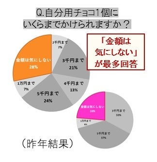 →「5万円以上」が「5千円以上」を上回るなど、「欲しいチョコの為なら金額は気にしない」という方が多数いることがわかりました。