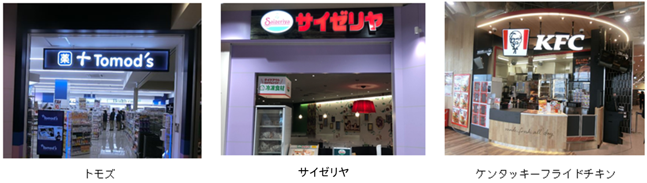 ドラッグストア「トモズ」、イタリアンワイン&カフェレストラン「サイゼリヤ」、ファストフードチェーン「ケンタッキーフライドチキン」も同時にオープンいたします。