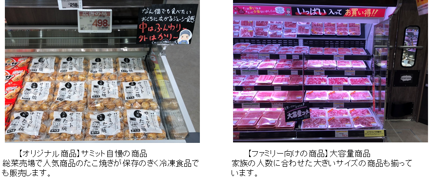 ≪地元の生鮮食品やオリジナル商品を品揃え≫地元で育てた横浜市の野菜や神奈川県で水揚げされた生鮮魚など、鮮度抜群の生鮮食品を品揃えします。その他には、サミットでしか買えないオリジナル商品を品揃えいたします。また、ファミリー世帯が多い地域ニーズにお応えし、大容量でまとめ買いできるお買得な商品も販売いたします。
