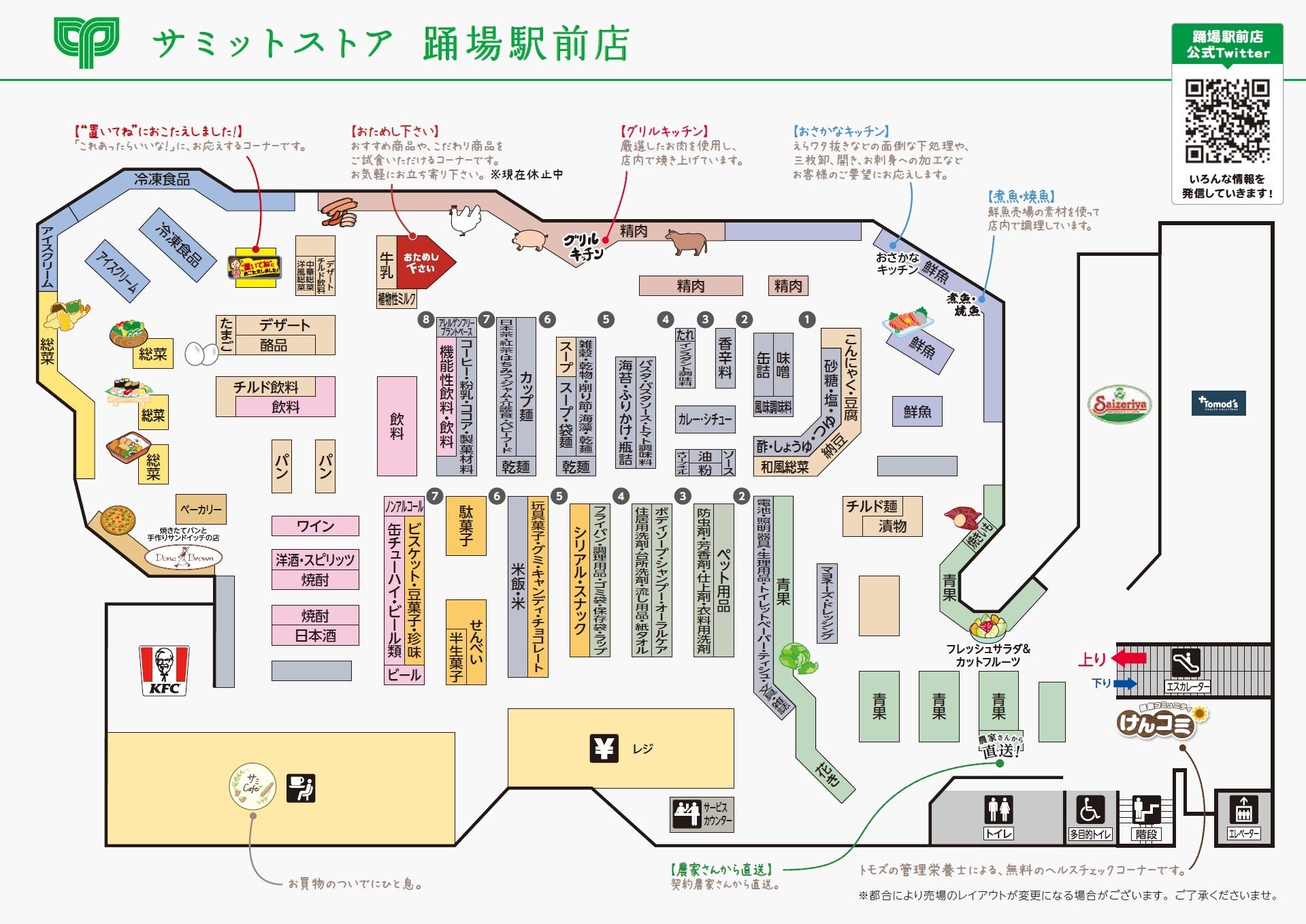 横浜市内で10店舗目の出店となる当店は、横浜市営地下鉄ブルーライン「踊場駅」より徒歩5分に位置し、幹線道路「長後街道」に面した視認性の良い店舗です。周辺は大規模なマンションや住宅街が広がりファミリー世帯が多い地域であるため、お仕事や家事で忙しい中でも、ご家庭でおいしいお食事をお楽しみいただけるよう「お総菜」「簡便商品」の品揃えを充実させます。毎日のお買物や週末のお車でのまとめ買いに対応できる、「少量」から「通常・大容量」サイズを幅広くご用意するほか、近年ニーズが高まっている簡単で便利な「ミールキット」「冷凍食品」を豊富に取り揃えます。同じフロア(施設3階)には、ドラッグストア「トモズ」、イタリアンワイン&カフェレストラン「サイゼリヤ」、ファストフードチェーン「ケンタッキーフライドチキン」も出店し、共に魅力のある施設を目指してまいります。