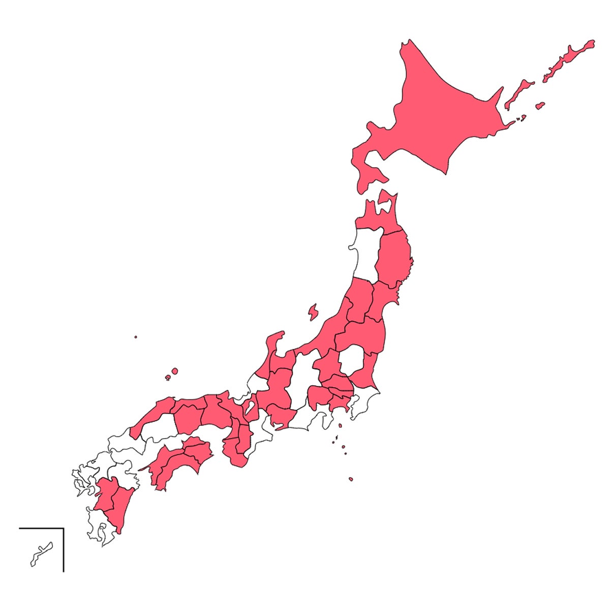 美唄市(北海道)、滝川市(北海道)、登別市(北海道)、外ヶ浜町(青森県)、盛岡市(岩手県)、白石市(宮城県)、西川町(山形県)、朝日町(山形県)、南相馬市(福島県)、常陸大宮市(茨城県)、行方市(茨城県)、伊勢崎市(群馬県)、川越市(埼玉県)、行田市(埼玉県)、所沢市(埼玉県)、草加市(埼玉県)、横瀬町(埼玉県)、上里町(埼玉県)、品川区(東京都)、稲城市(東京都)、鎌倉市(神奈川県)、上越市(新潟県)、佐渡市(新潟県)、滑川市(富山県)、小松市(石川県)、大月市(山梨県)、飛騨市(岐阜県)、蒲郡市(愛知県)、南知多町(愛知県)、守山市(滋賀県)、甲賀市(滋賀県)、笠置町(京都府)、泉大津市(大阪府)、柏原市(大阪府)、東大阪市(大阪府)、岬町(大阪府)、三木市(兵庫県)、川西市(兵庫県)、三田市(兵庫県)、生駒市(奈良県)、宇陀市(奈良県)、川西町(奈良県)、三宅町(奈良県)、和歌山市(和歌山県)、北栄町(鳥取県)、松江市(島根県)、飯南町(島根県)、鏡野町(岡山県)、阿南市(徳島県)、藍住町(徳島県)、東かがわ市(香川県)、松山市(愛媛県)、高知県、宿毛市(高知県)、熊本市(熊本県)、延岡市(宮崎県)