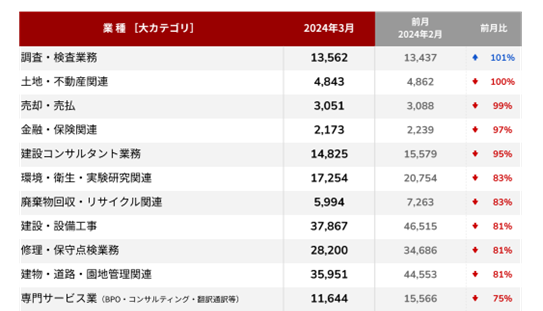 全体的に前月より案件数が減少している中、「調査・検査業務」のみ増加となりました。