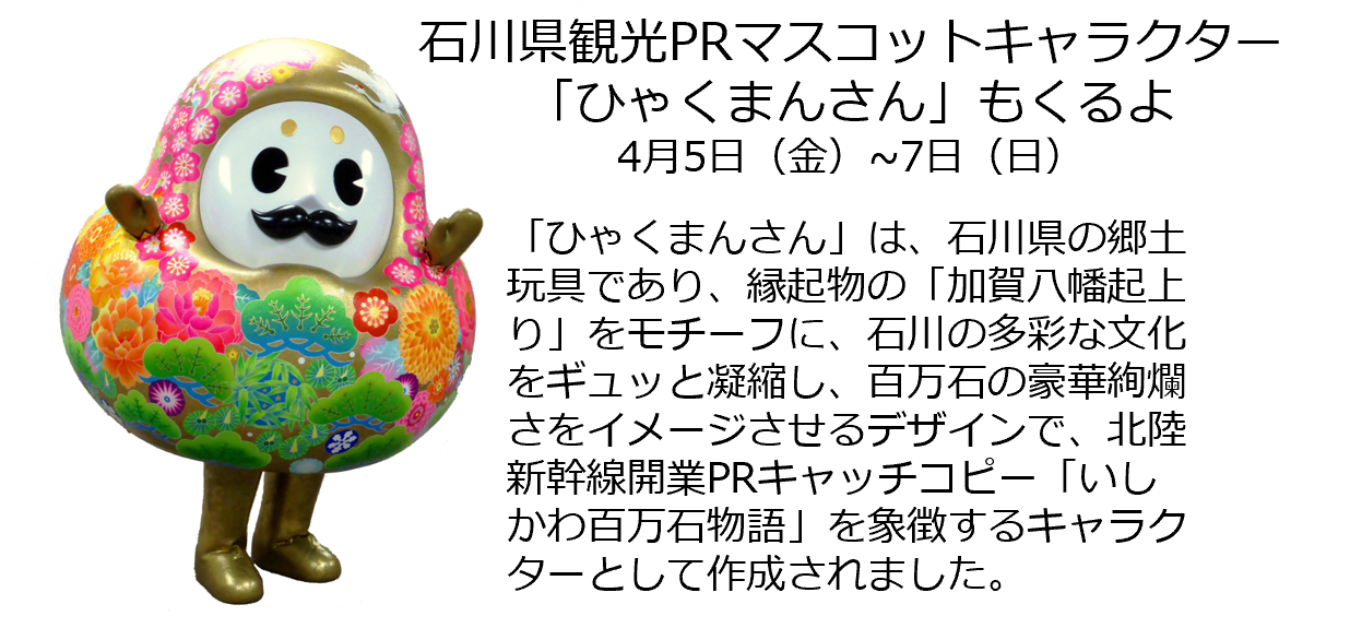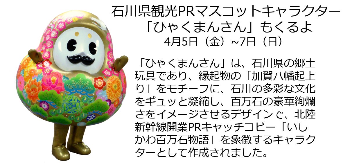 また、4月5日(金)から7日(日)には、石川県の特産品販売や石川県の食材を使った飲食ブース、伝統芸能や復興音楽祭などのステージパフォーマンスも行われます。