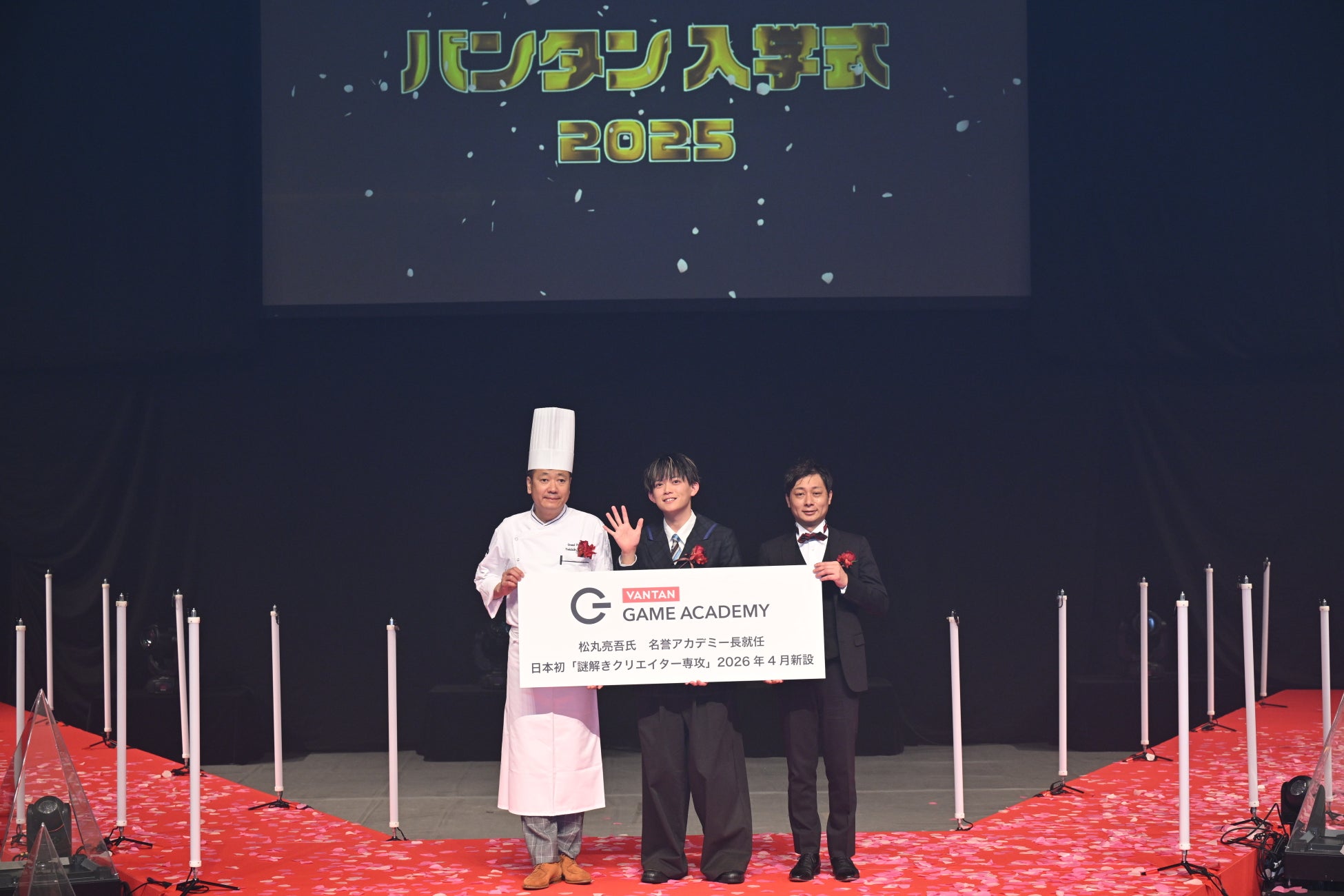 本入学式は、「謎解きクリエイター専攻」の2026年4月開講に先立ち、「新たな学びの門出を、“謎解き”を通じてバンタンらしく応援したい」という想いから、「謎解き入学式」を実施いたしました。バンタンゲームアカデミーの名誉アカデミー長に就任した謎解きクリエイター・松丸亮吾氏がプロデュースし、入学式の招待状や、会場内の看板装飾・さらには力士まで、あらゆる場所に“謎”が仕掛けられた、これまでにない入学式となりました。