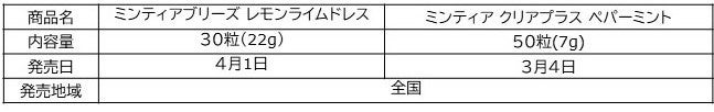 『ミンティアブリーズ レモンライムドレス』4月1日発売『ミンティア クリアプラス ペパーミント』3月4日発売