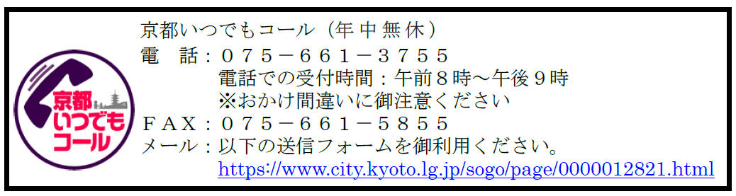 カ 申込方法 京都いつでもコールに電話、FAX、メールのいずれかで参加希望日・時間帯(複数参加不可)、参