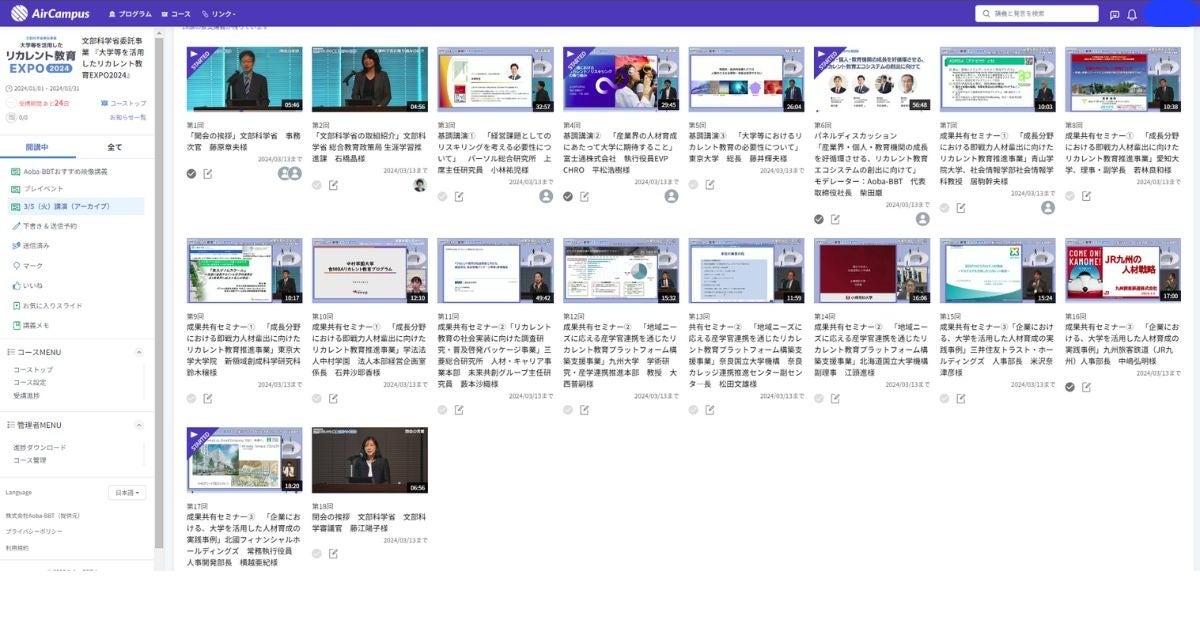 翌日3月6日(水)から、イベントの様子を収めたアーカイブ動画が、Aoba-BBTの遠隔教育用システム『AirCampus®』にて無料で公開されています。