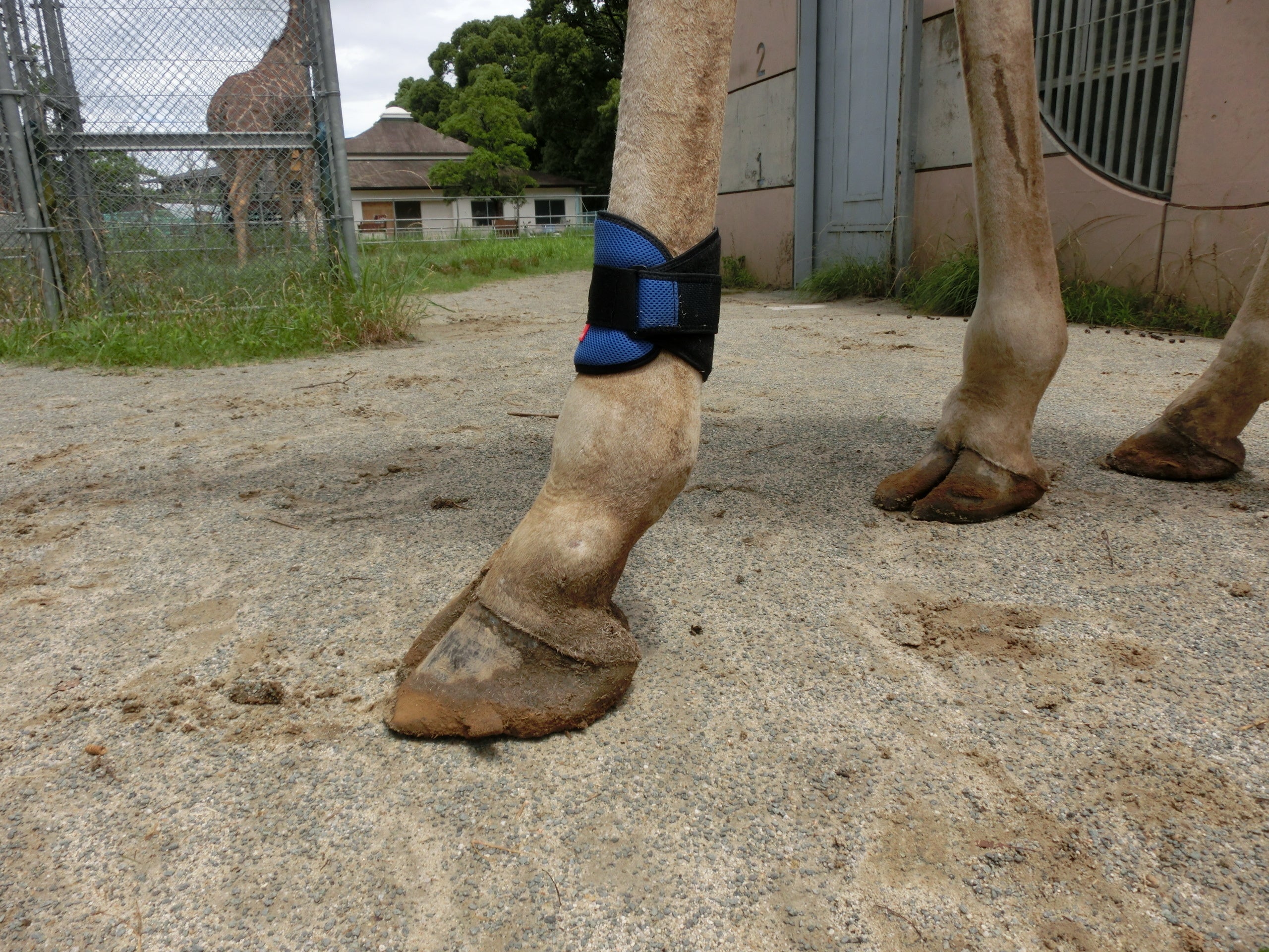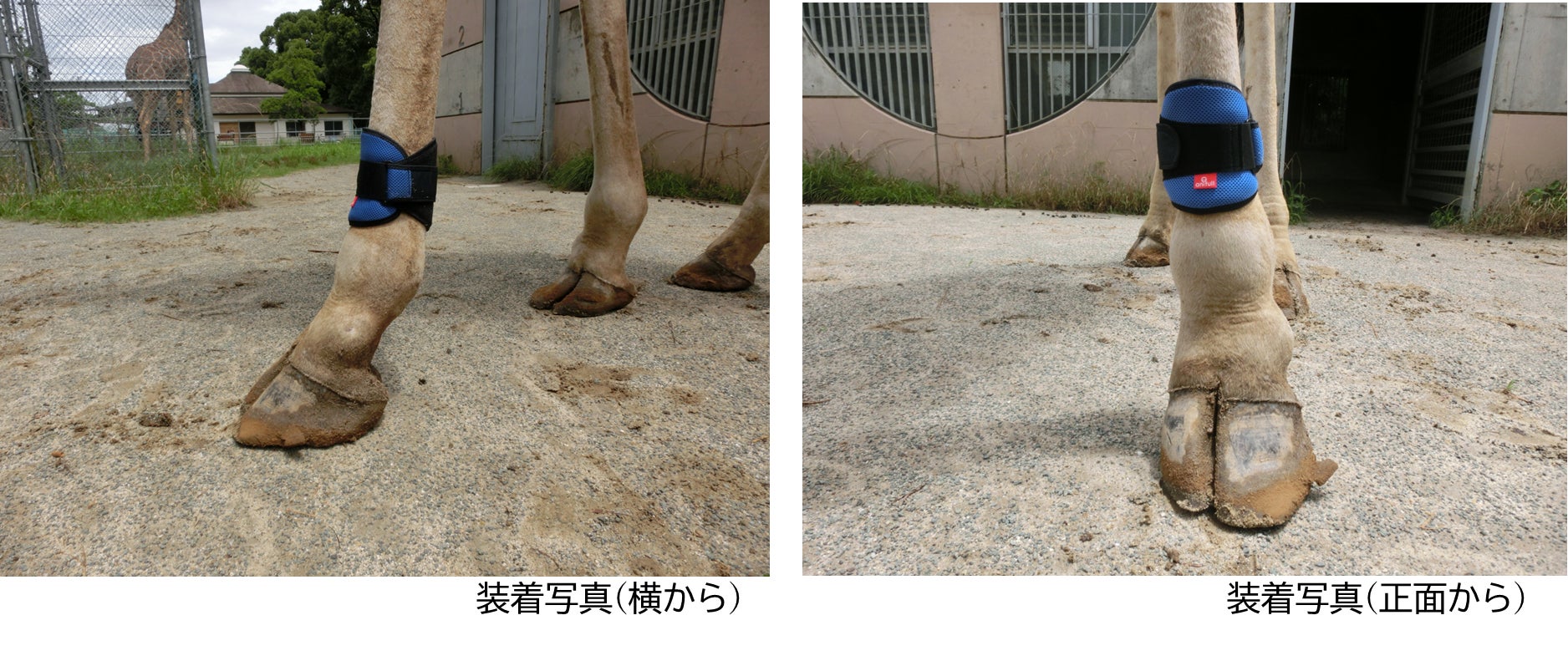 今回の装具は、通年で使⽤予定である為、丈夫かつ着脱が容易で、夏季でも蒸れにくい通気性を重要視しました。第1弾に引き続き、試作・修正を経て、キリンに適した製品になっていると思います。本製品を活⽤し得られたデータを⽤いて、当園のキリンのより良い飼育管理に役⽴てるだけでなく、飼育下のキリンの飼育技術向上に貢献していきたいと考えています。